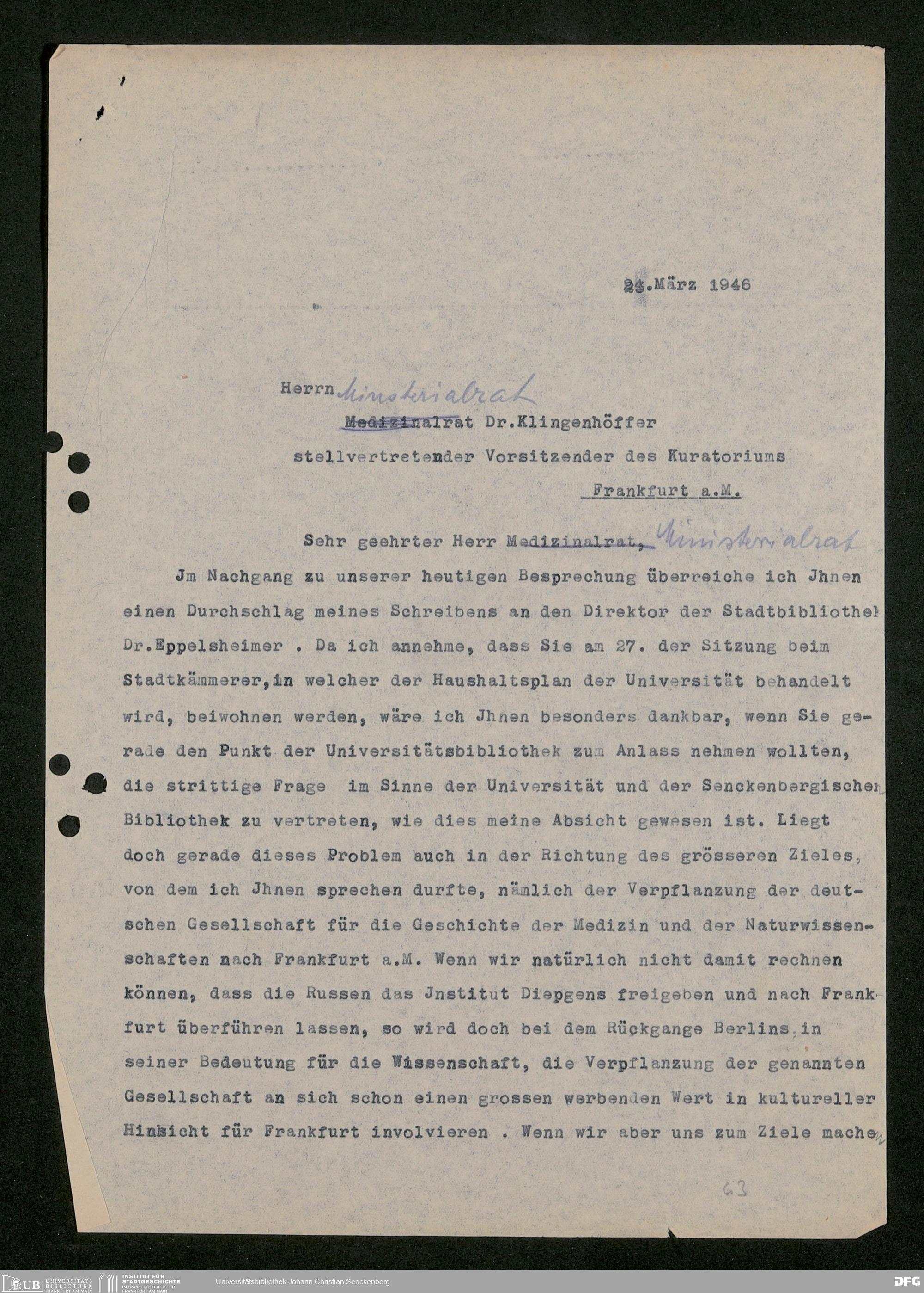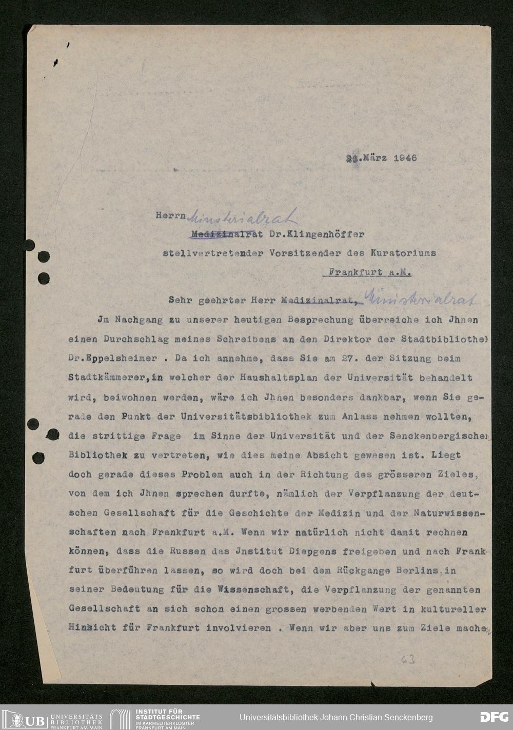 V48 Dr. Senckenbergische Stiftung, 793 - Bibliothek in der Nachkriegszeit