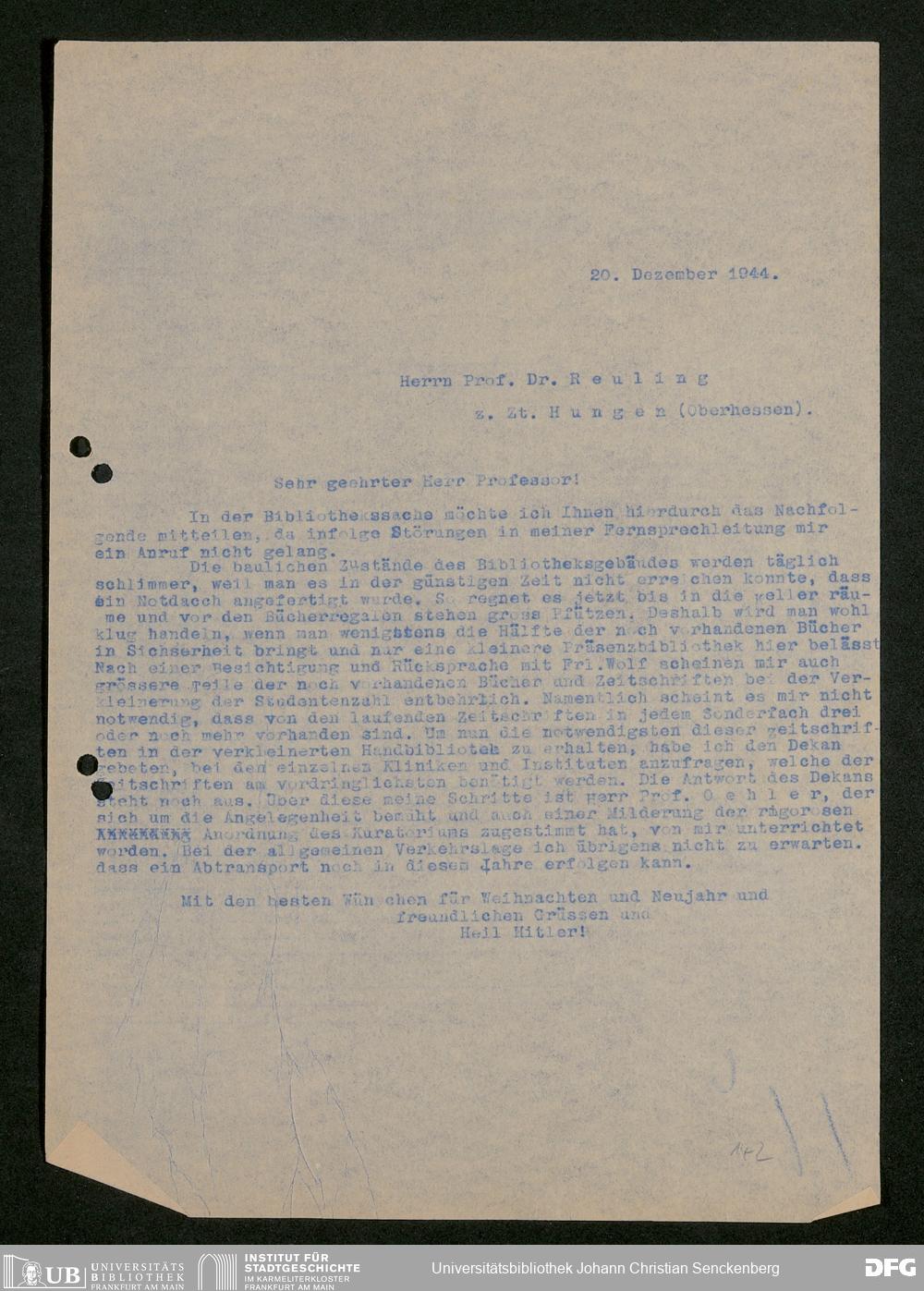 V48 Dr. Senckenbergische Stiftung, 793 - Bibliothek in der Nachkriegszeit