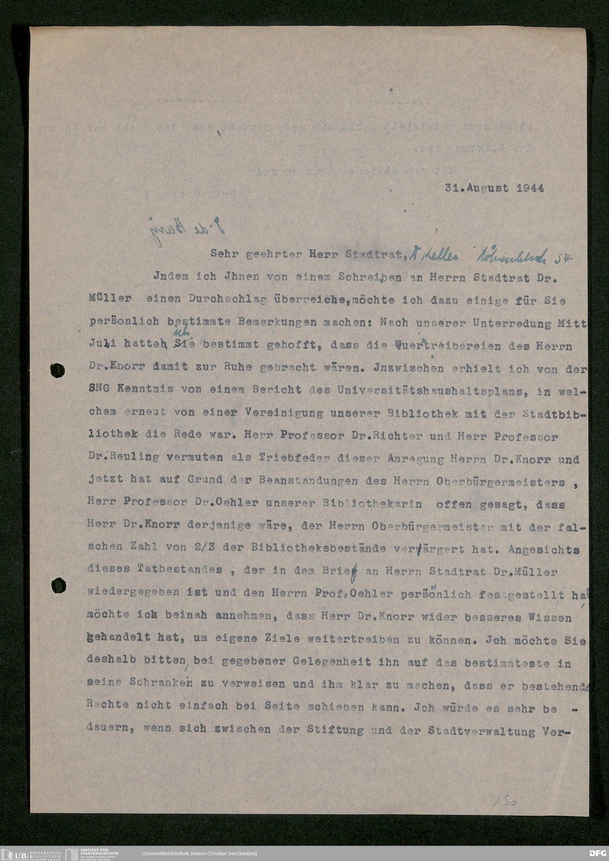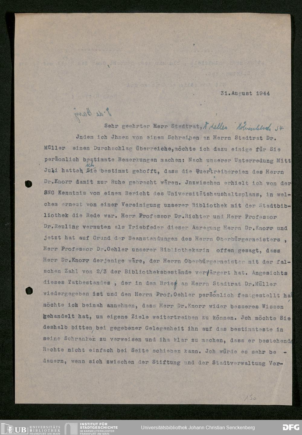 V48 Dr. Senckenbergische Stiftung, 793 - Bibliothek in der Nachkriegszeit