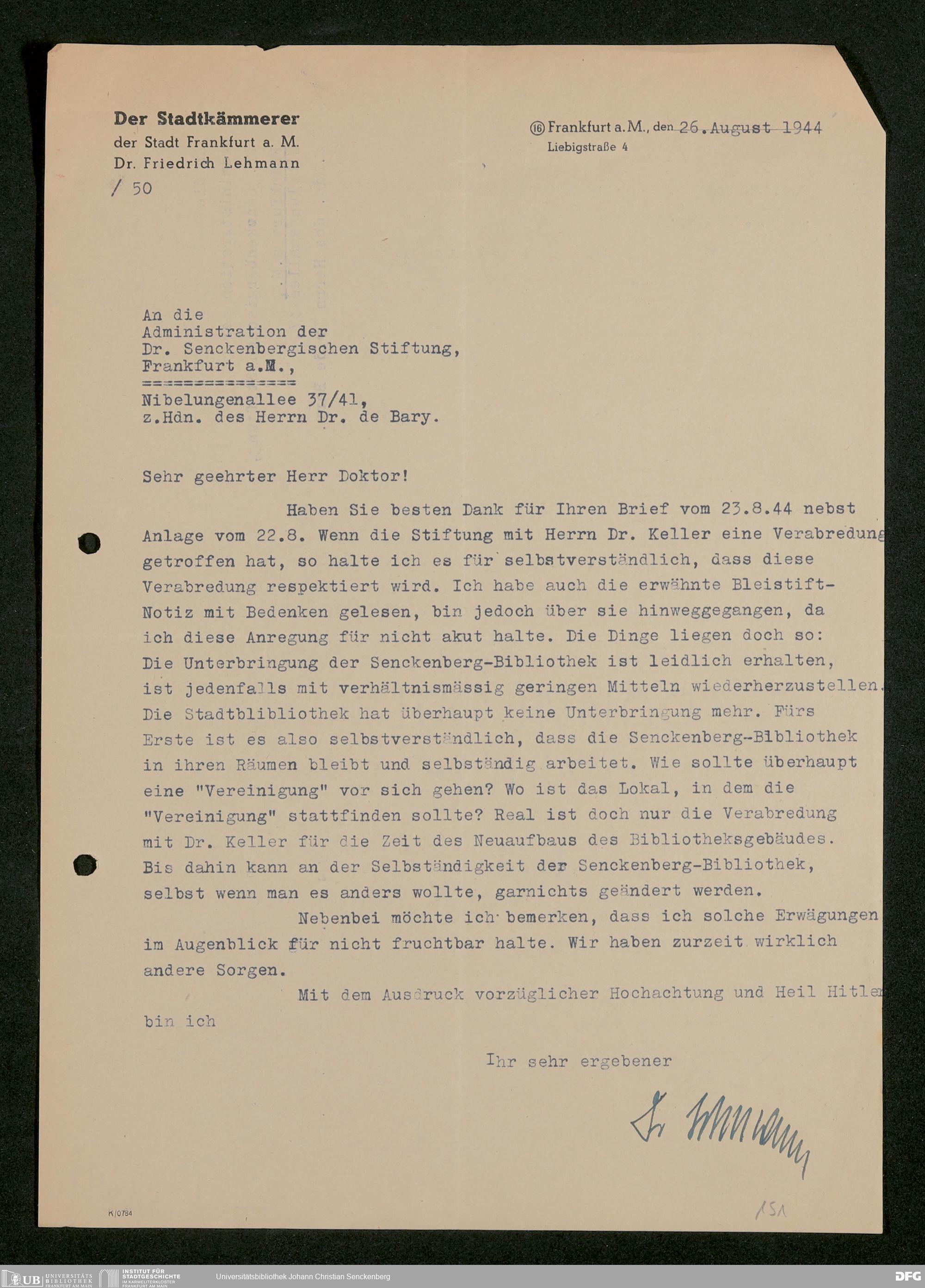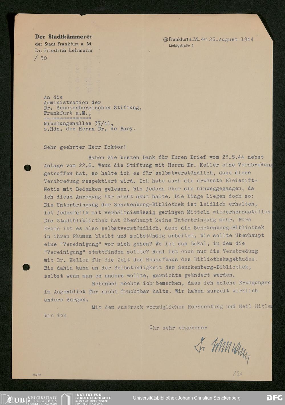 V48 Dr. Senckenbergische Stiftung, 793 - Bibliothek in der Nachkriegszeit