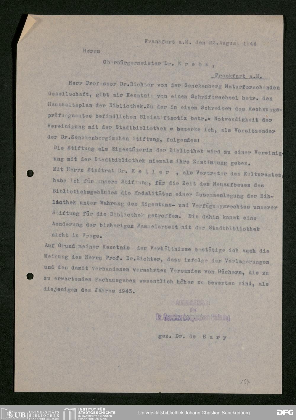 V48 Dr. Senckenbergische Stiftung, 793 - Bibliothek in der Nachkriegszeit