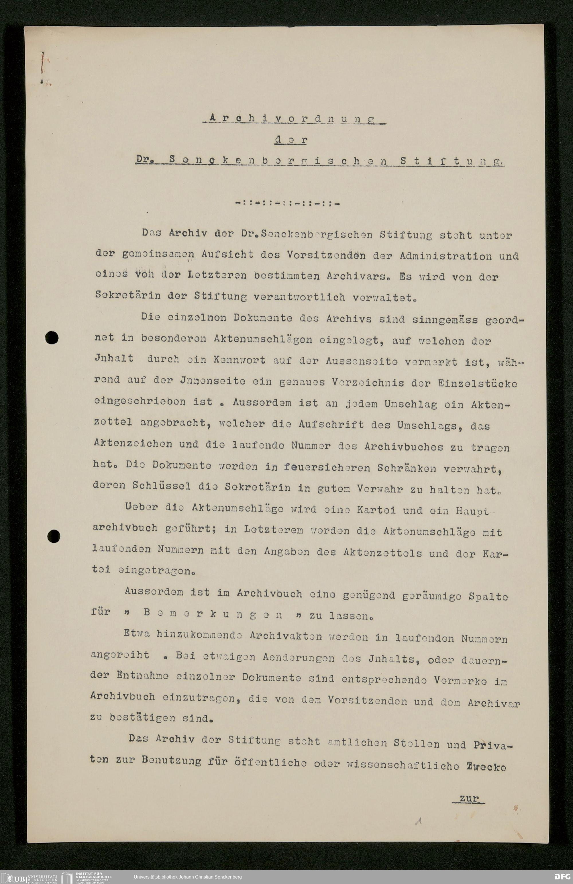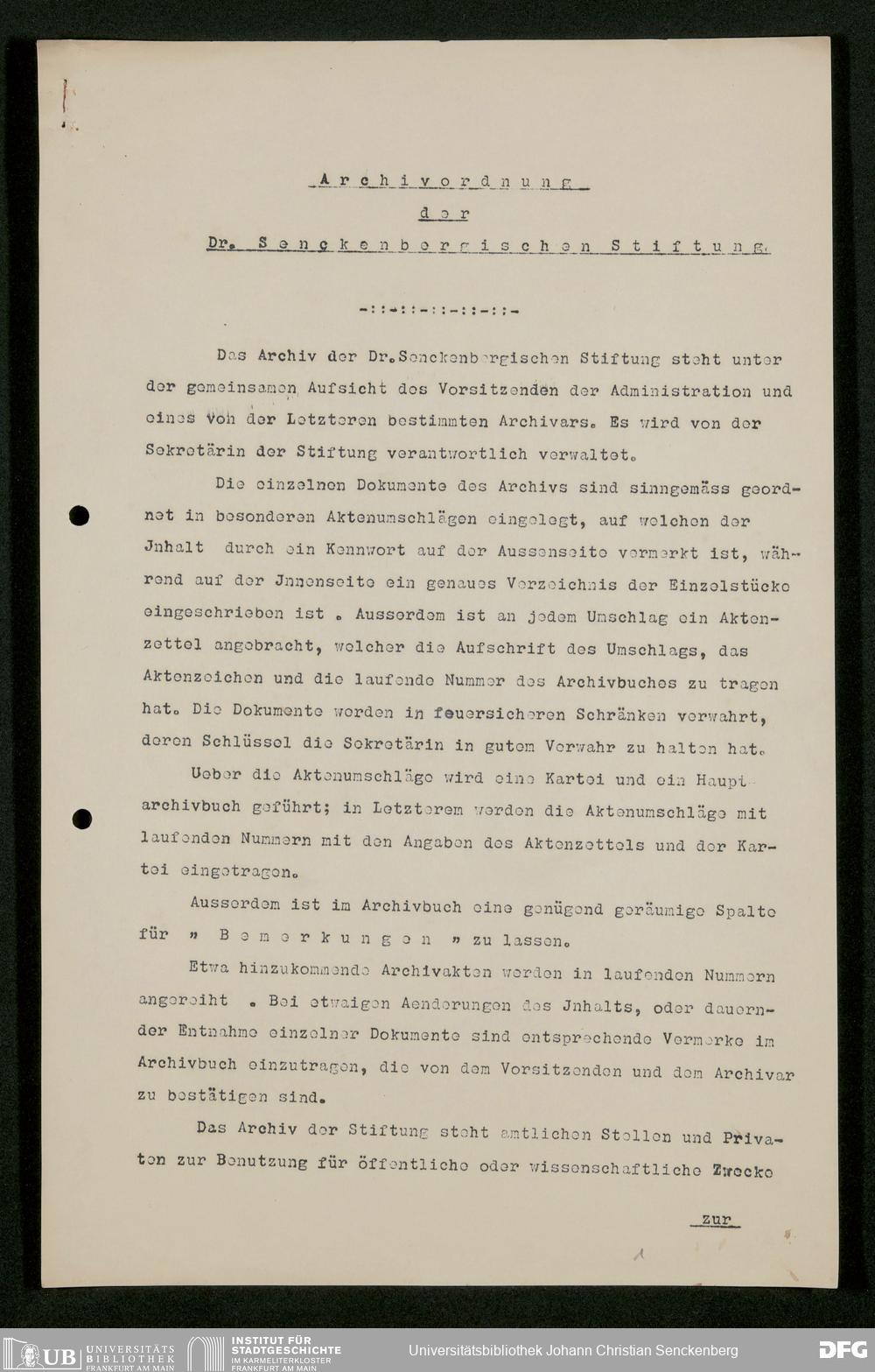 V48 Dr. Senckenbergische Stiftung, 816 - Ordnung des Archivs der Dr. Senckenbergischen Stiftung und Nachweis ausgeliehener Akten