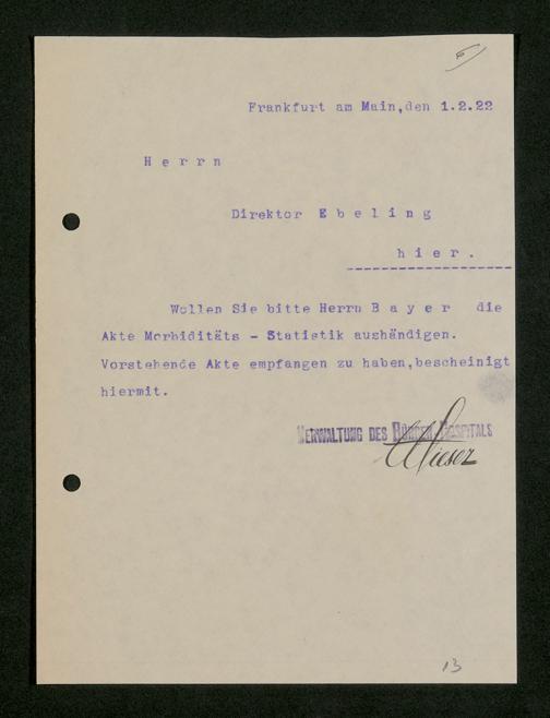 V48 Dr. Senckenbergische Stiftung, 816 - Ordnung des Archivs der Dr. Senckenbergischen Stiftung und Nachweis ausgeliehener Akten