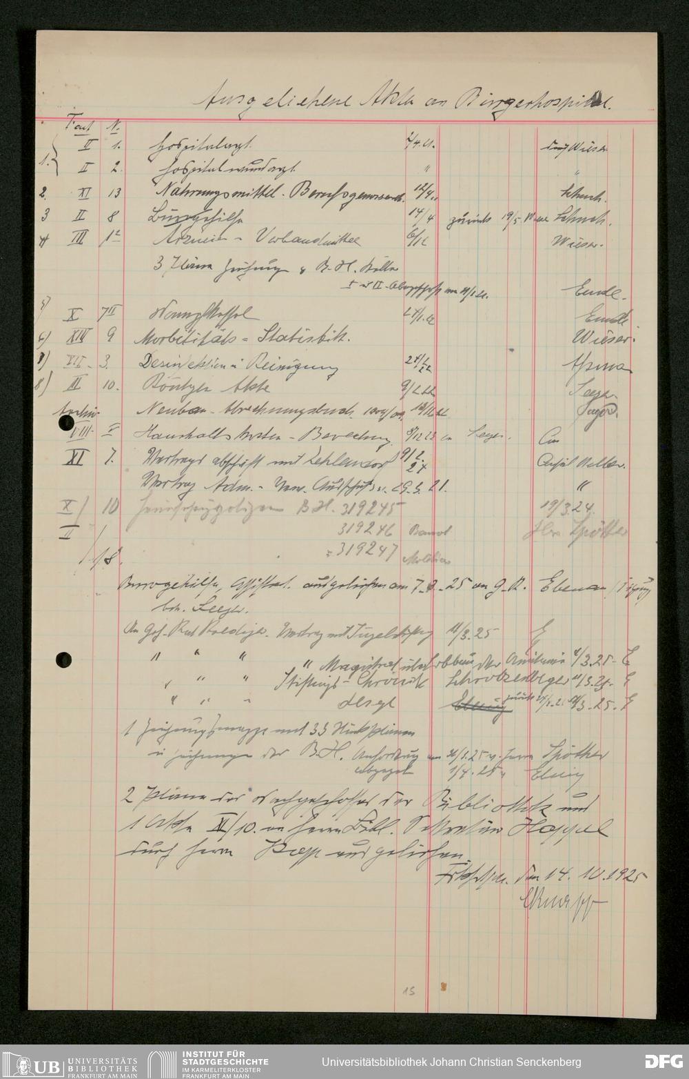 V48 Dr. Senckenbergische Stiftung, 816 - Ordnung des Archivs der Dr. Senckenbergischen Stiftung und Nachweis ausgeliehener Akten