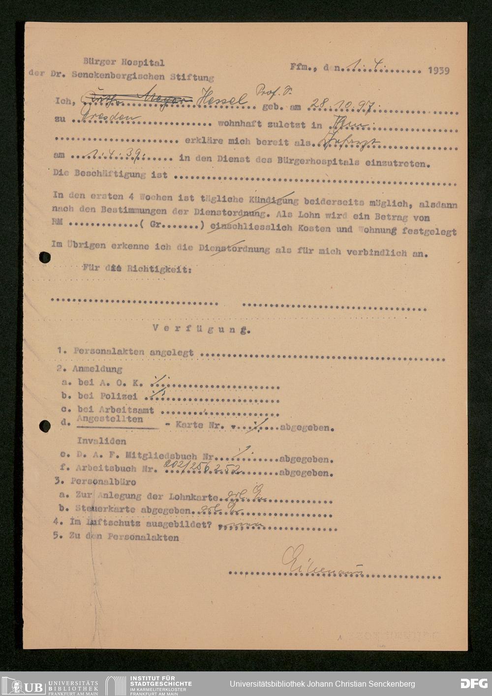 V48 Dr. Senckenbergische Stiftung, 849 - ... Personalakten des Bürgerhospitals, H-P