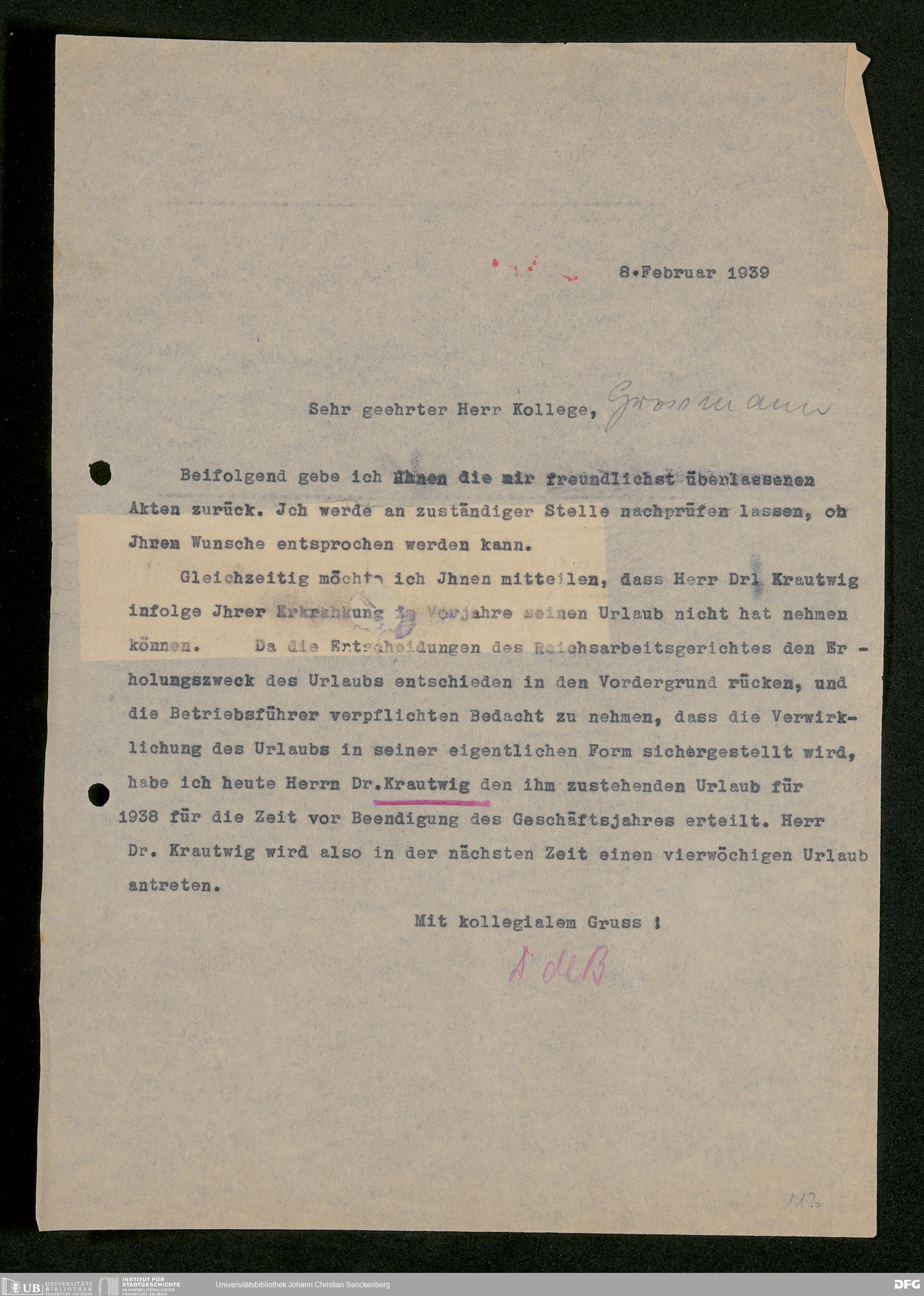 Nachlass Georg Kloss