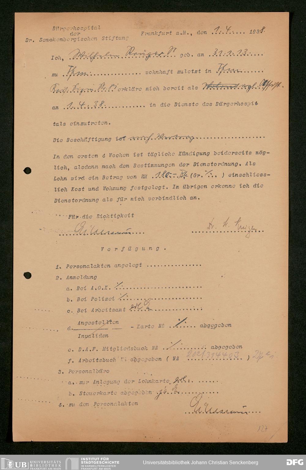 V48 Dr. Senckenbergische Stiftung, 849 - ... Personalakten des Bürgerhospitals, H-P