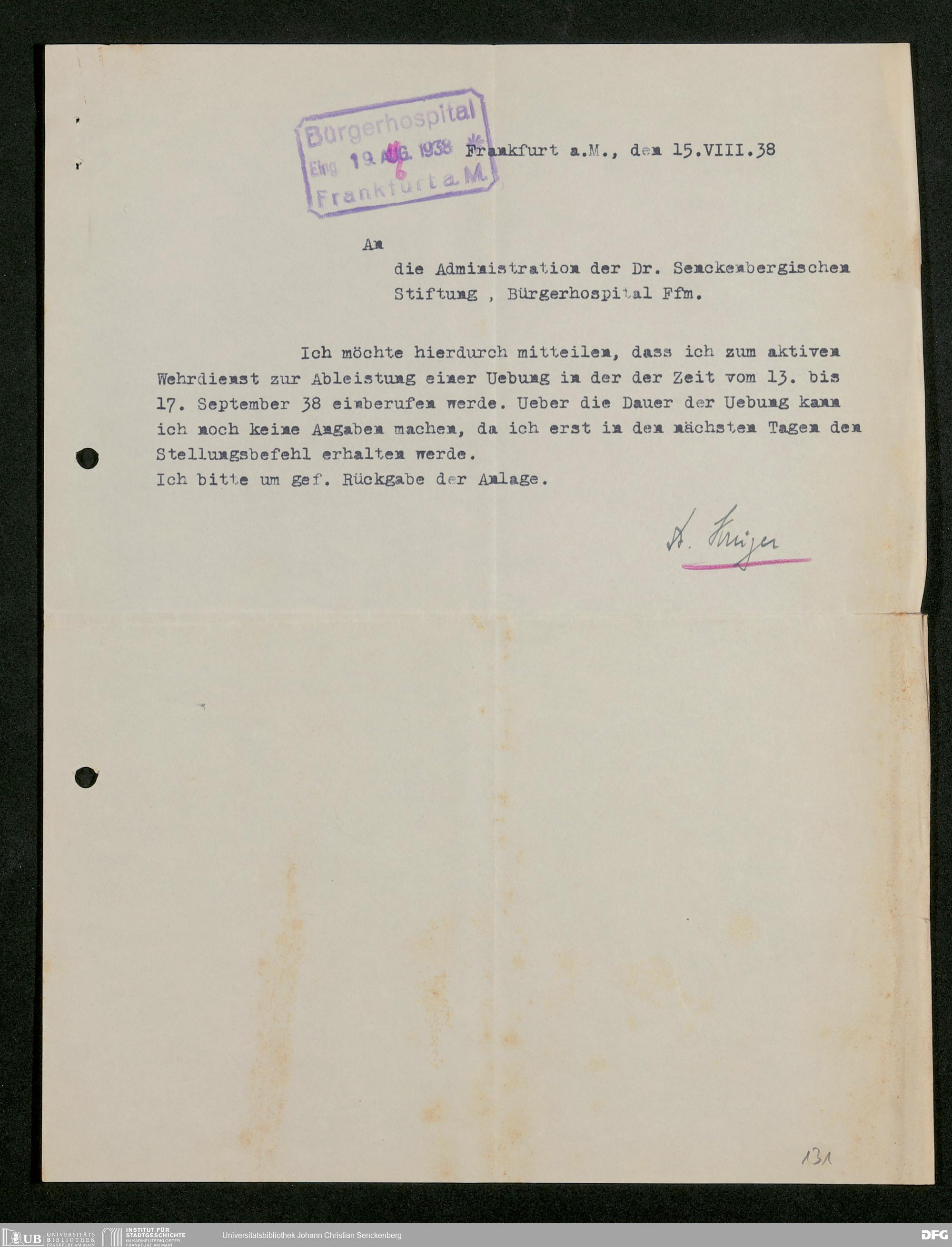 V48 Dr. Senckenbergische Stiftung, 849 - ... Personalakten des Bürgerhospitals, H-P