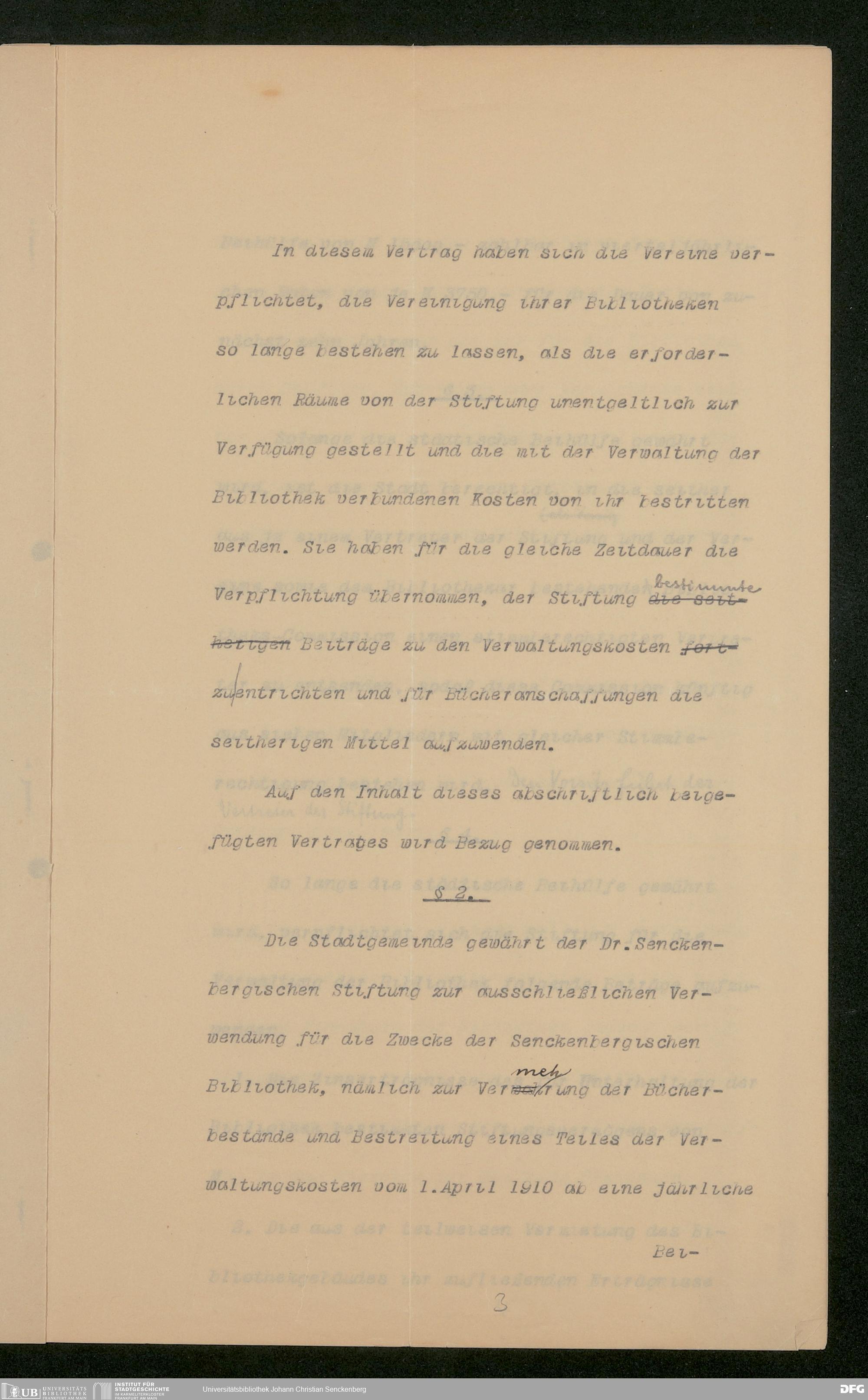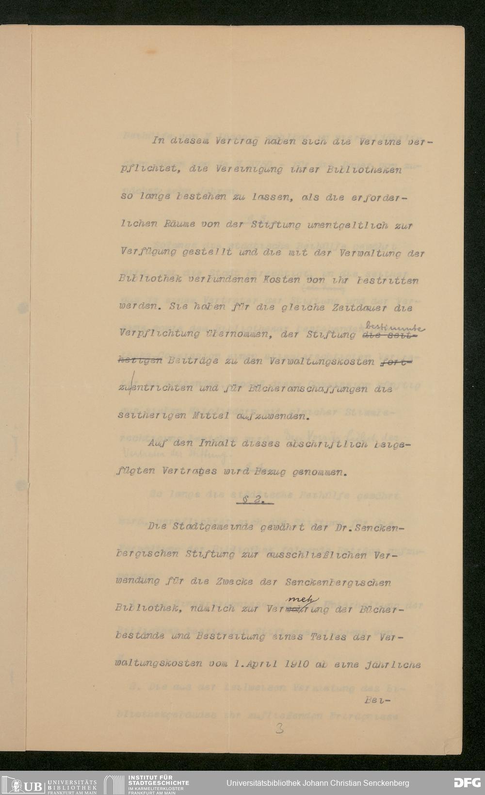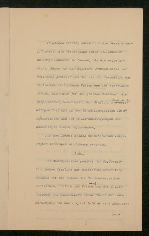 V48 Dr. Senckenbergische Stiftung, 853 - Bibliotheks-Vertrag zwischen Stadt und Stiftung