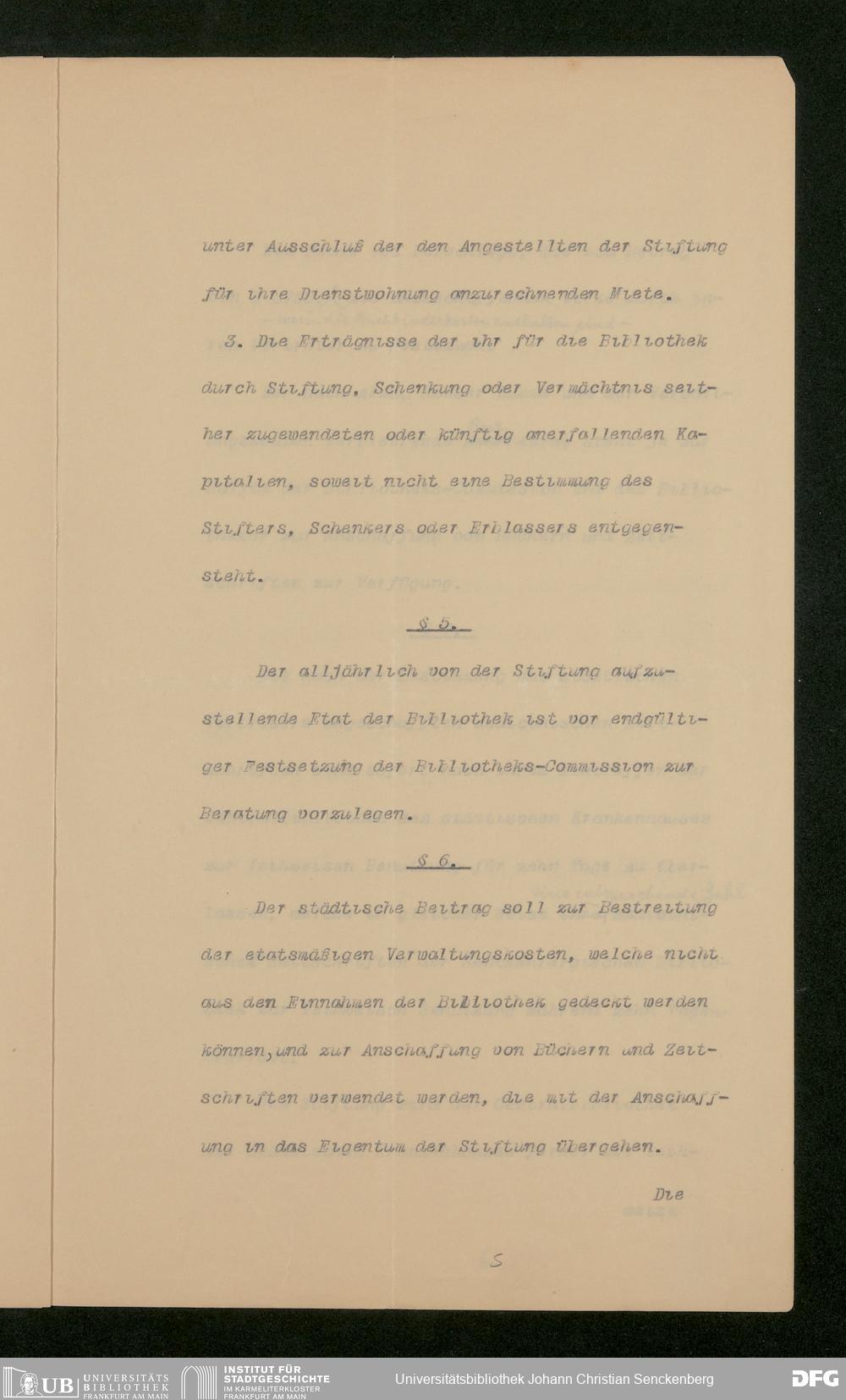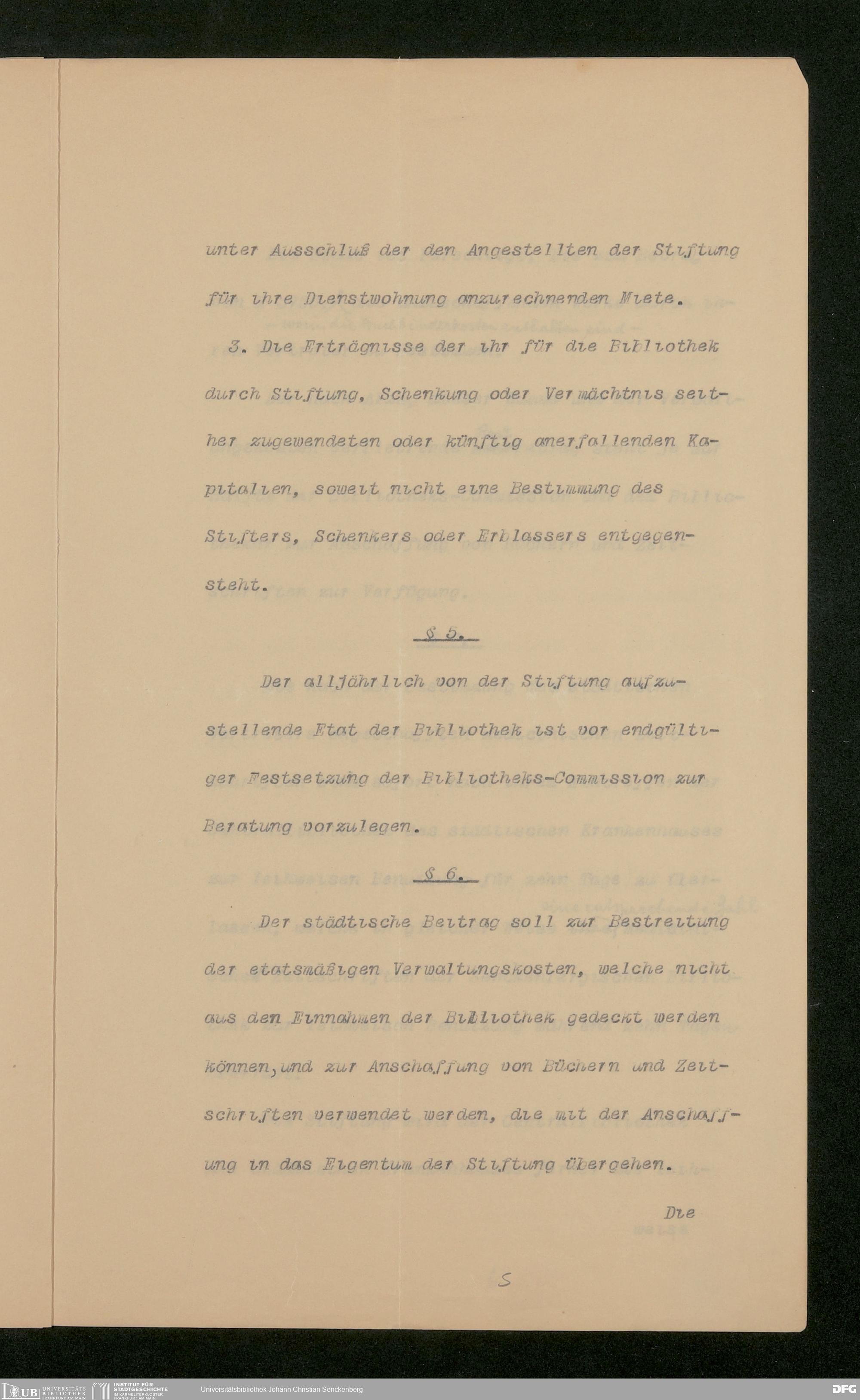 V48 Dr. Senckenbergische Stiftung, 853 - Bibliotheks-Vertrag zwischen Stadt und Stiftung