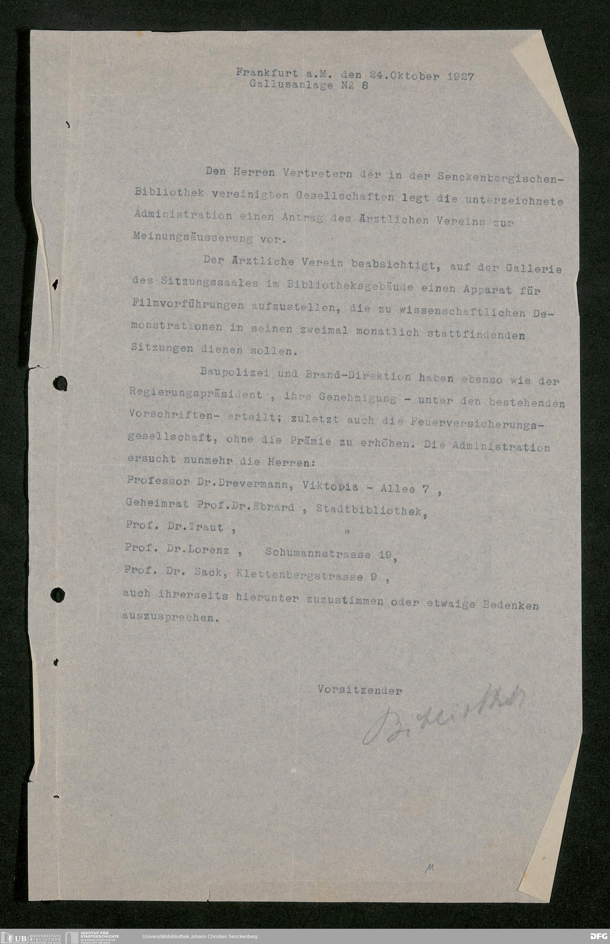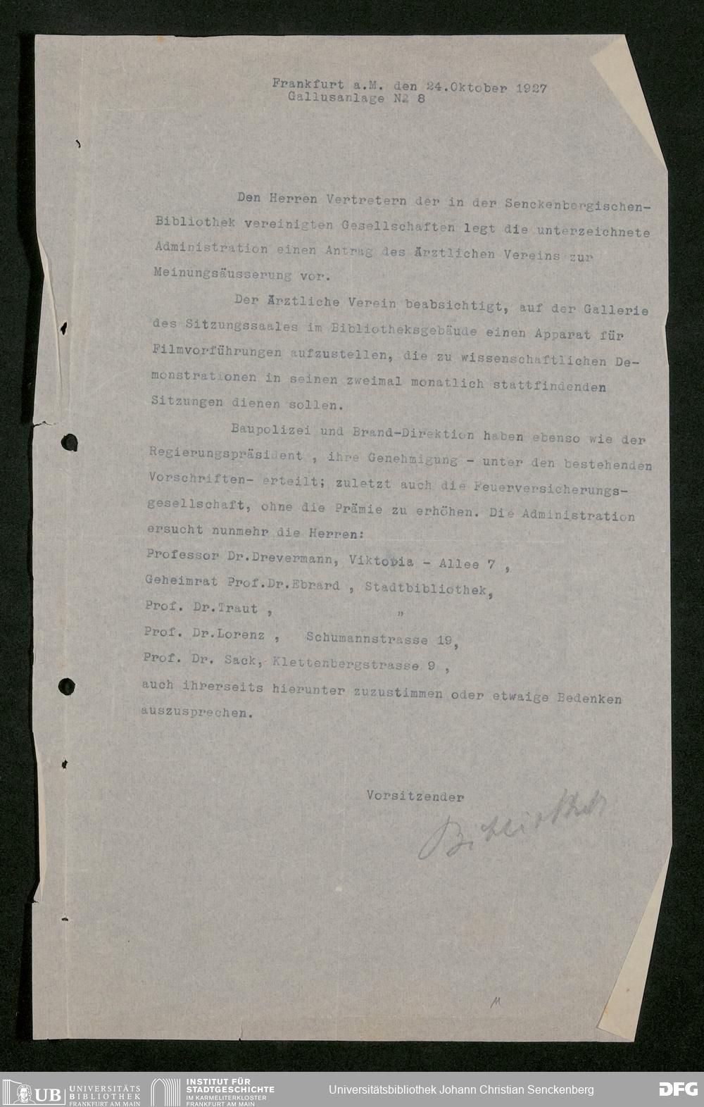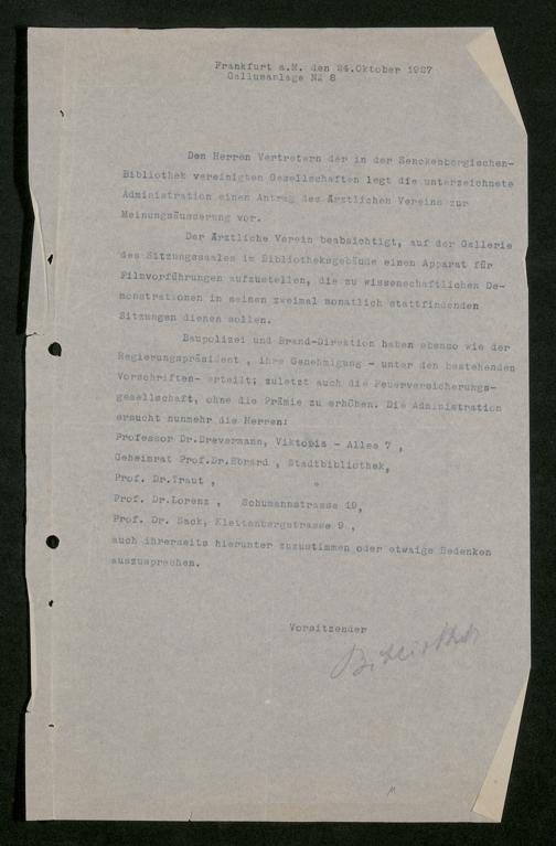 V48 Dr. Senckenbergische Stiftung, 853 - Bibliotheks-Vertrag zwischen Stadt und Stiftung