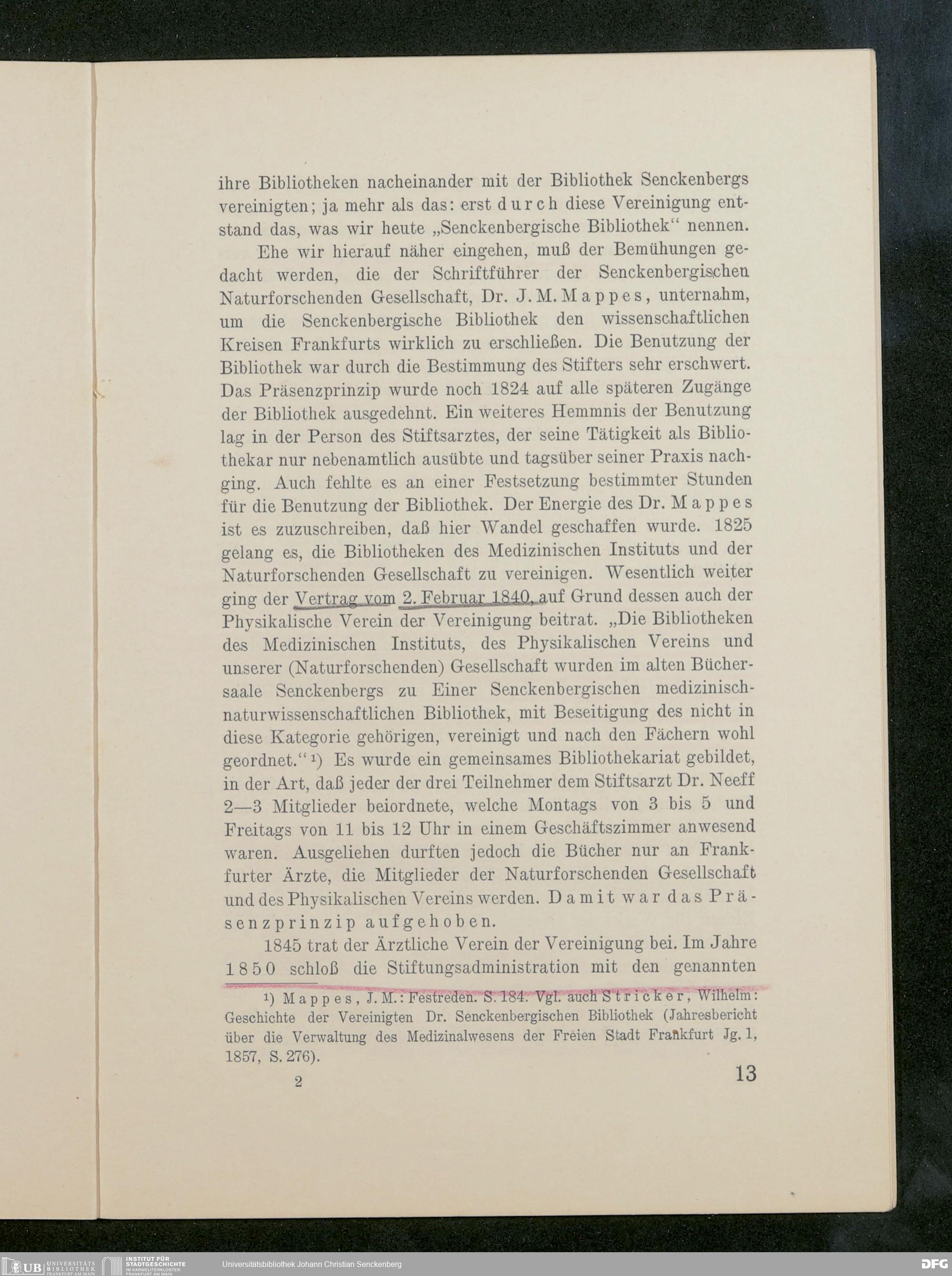 V48 Dr. Senckenbergische Stiftung, 853 - Bibliotheks-Vertrag zwischen Stadt und Stiftung