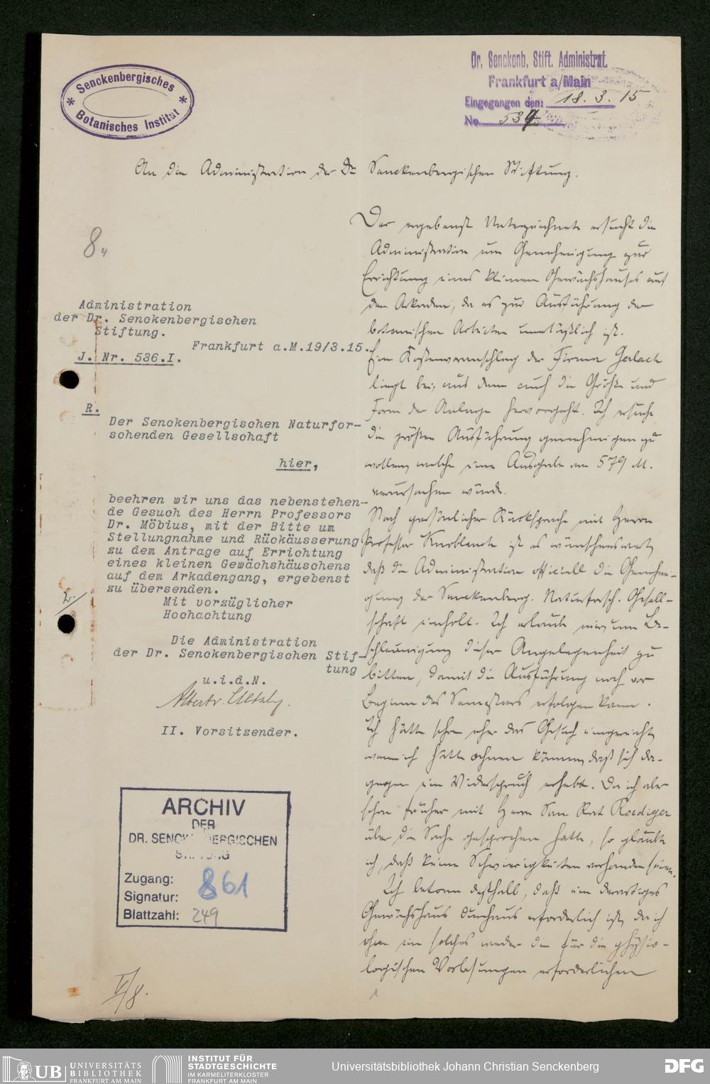 V48 Dr. Senckenbergische Stiftung, 861 - ... Botanisches Institut, Botanisches Institut