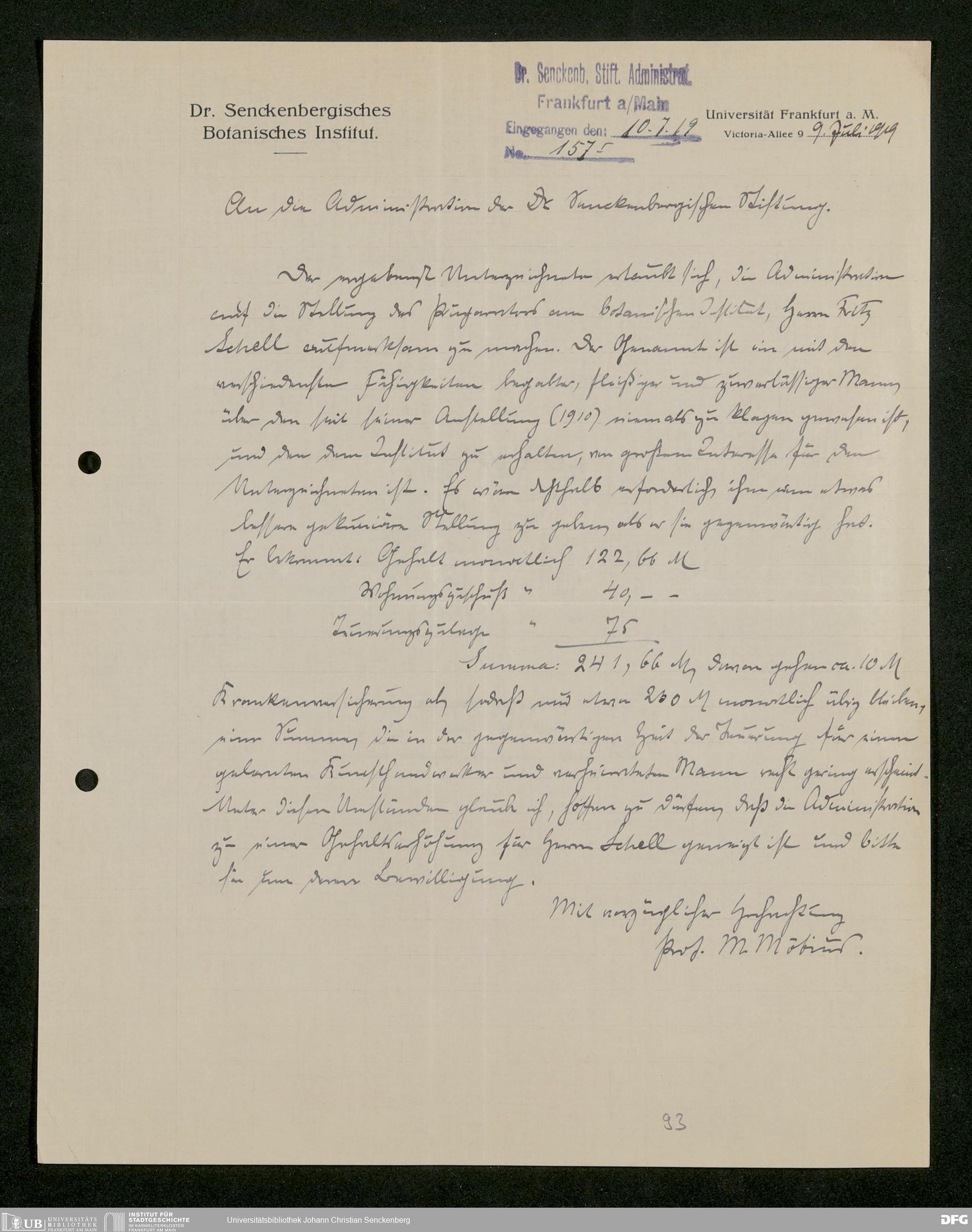 V48 Dr. Senckenbergische Stiftung, 861 - ... Botanisches Institut, Botanisches Institut