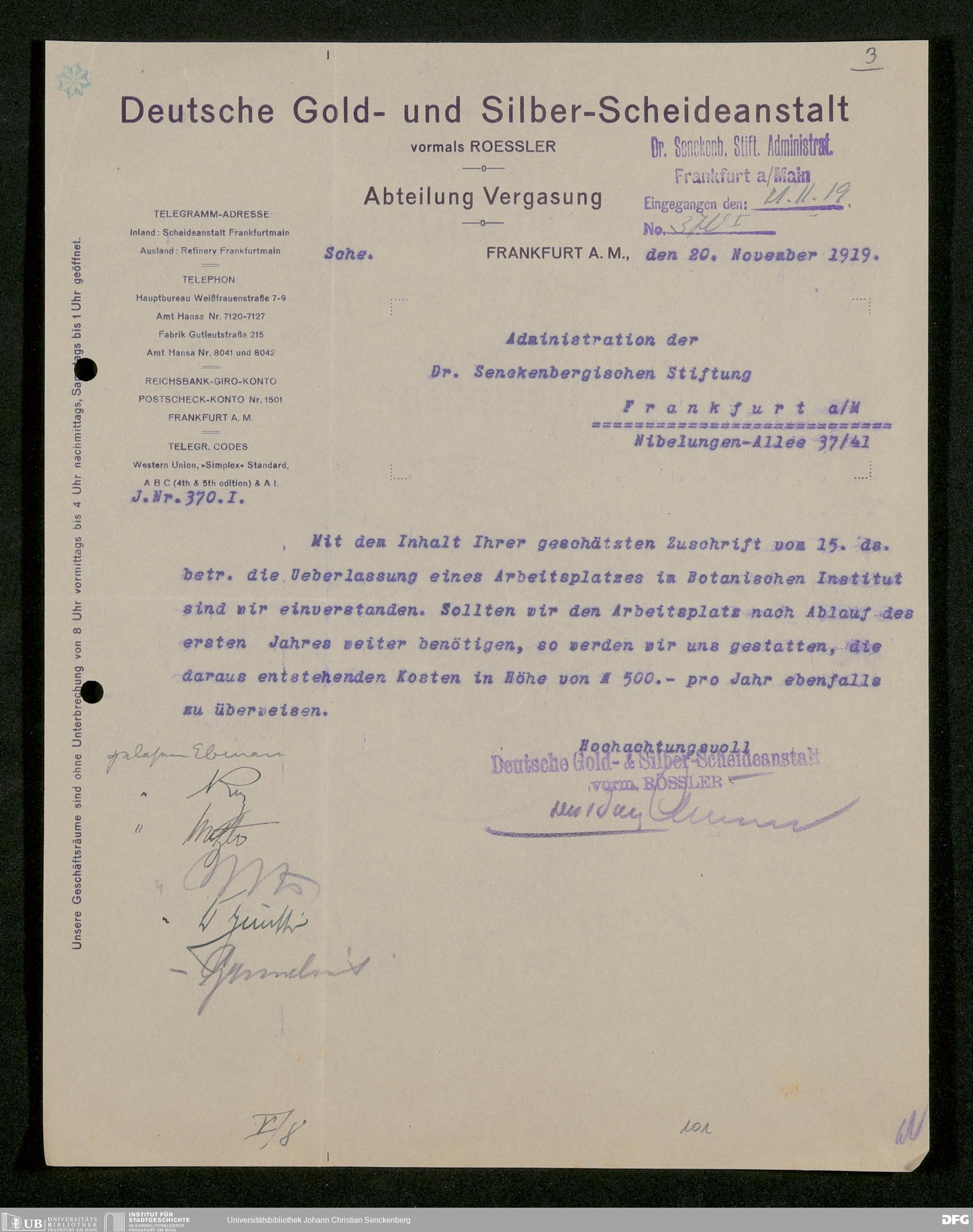 V48 Dr. Senckenbergische Stiftung, 861 - ... Botanisches Institut, Botanisches Institut