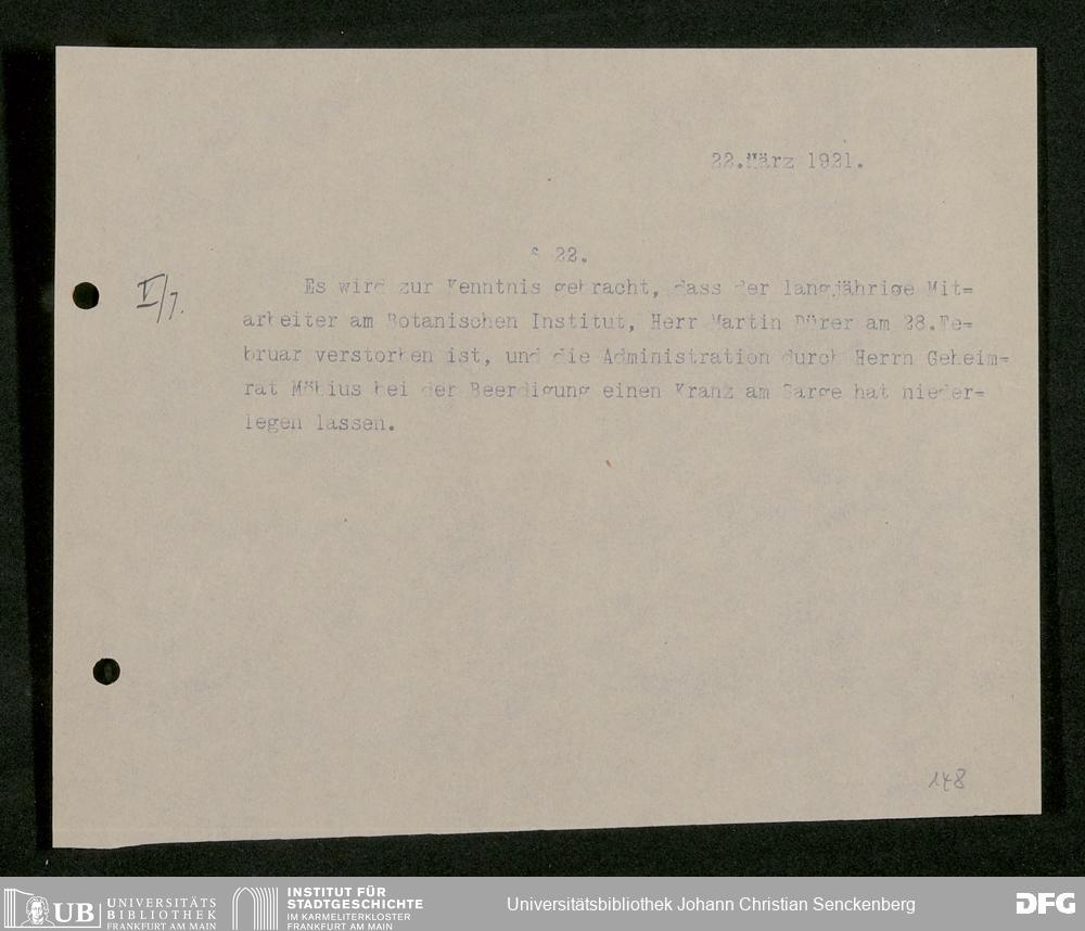 V48 Dr. Senckenbergische Stiftung, 861 - ... Botanisches Institut, Botanisches Institut