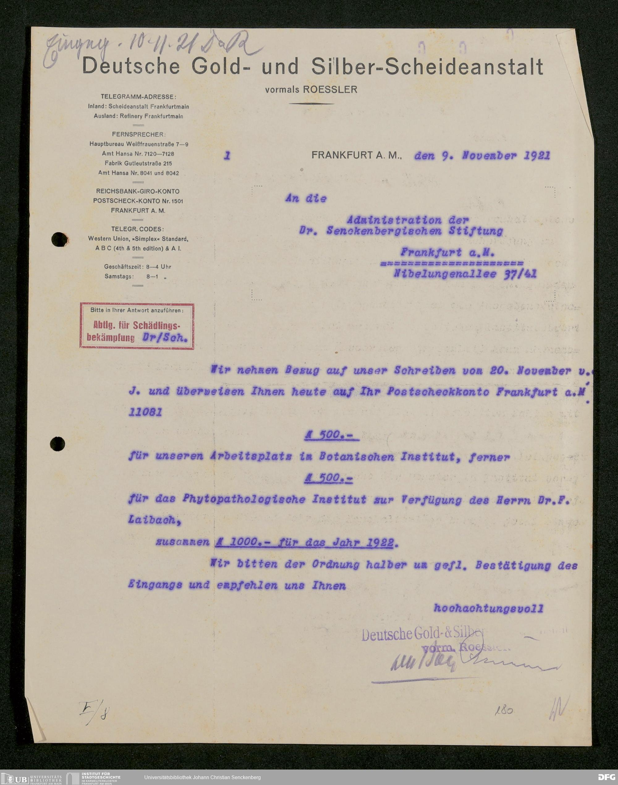 V48 Dr. Senckenbergische Stiftung, 861 - ... Botanisches Institut, Botanisches Institut