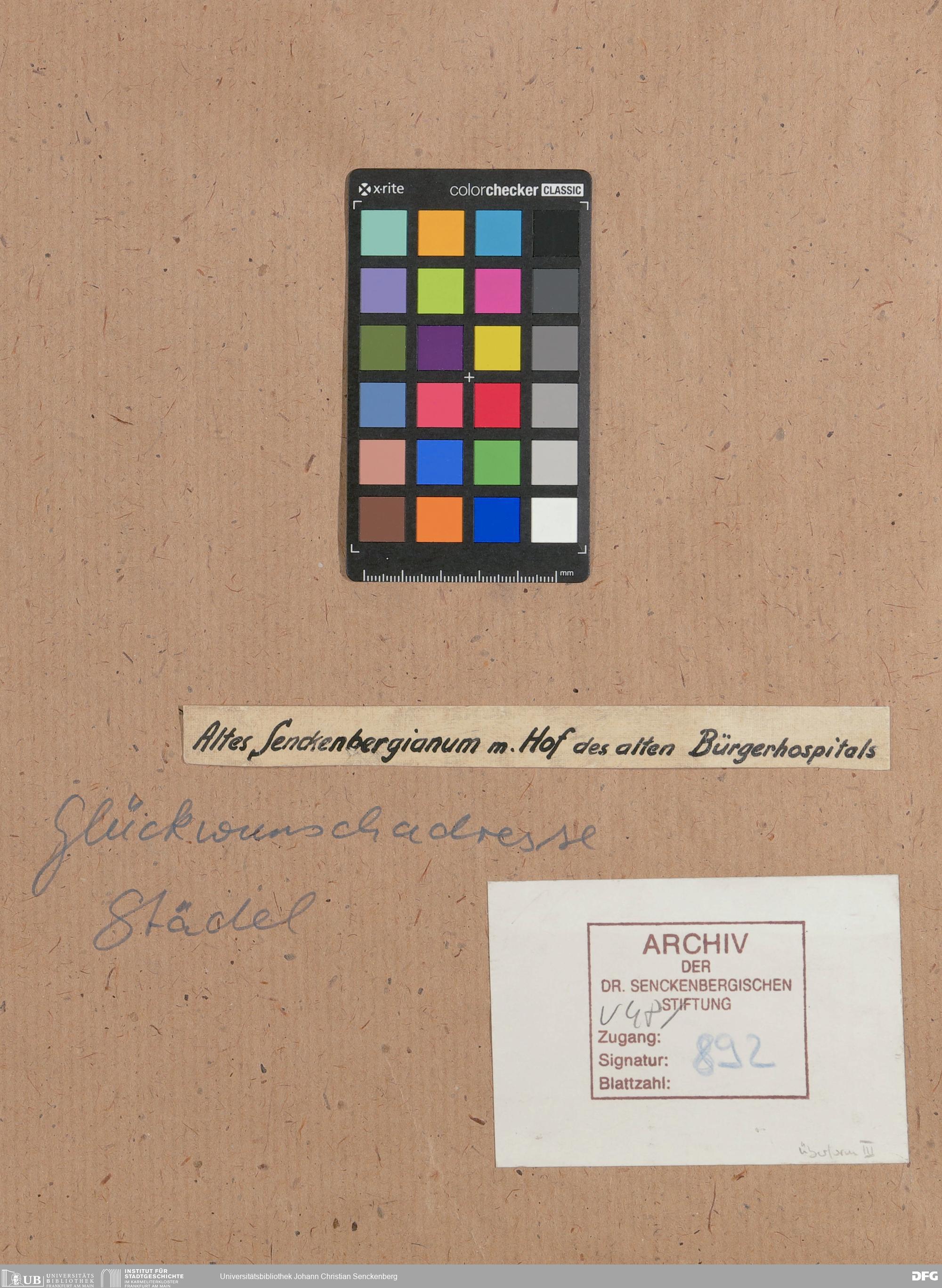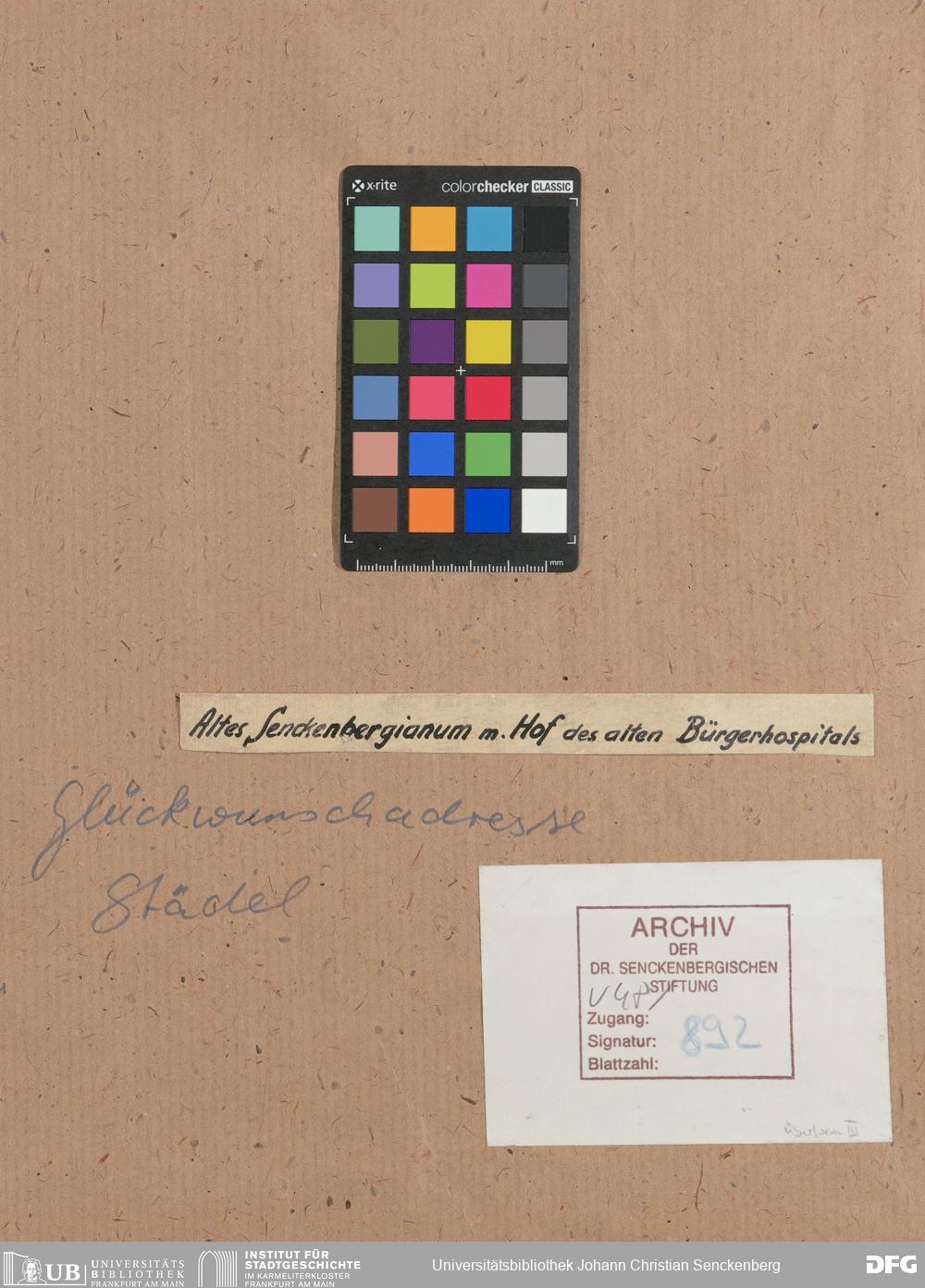 V48 Dr. Senckenbergische Stiftung, 892 - Glückwunschadresse der Administration des Städelschen Kunstinstituts zum 100jährigen Bestehen der Senckenbergischen Stiftung