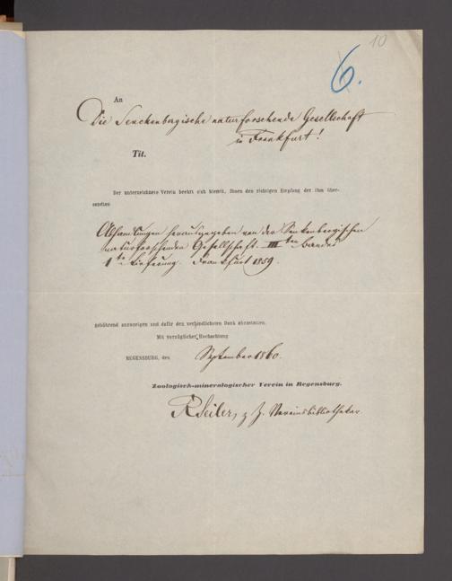 V176 Senckenberg Gesellschaft für Naturforschung, 17 - Korrespondenz über den Schriftentausch mit naturwissenschaftlichen Vereinigungen mit Ortsindex, Bd. 1