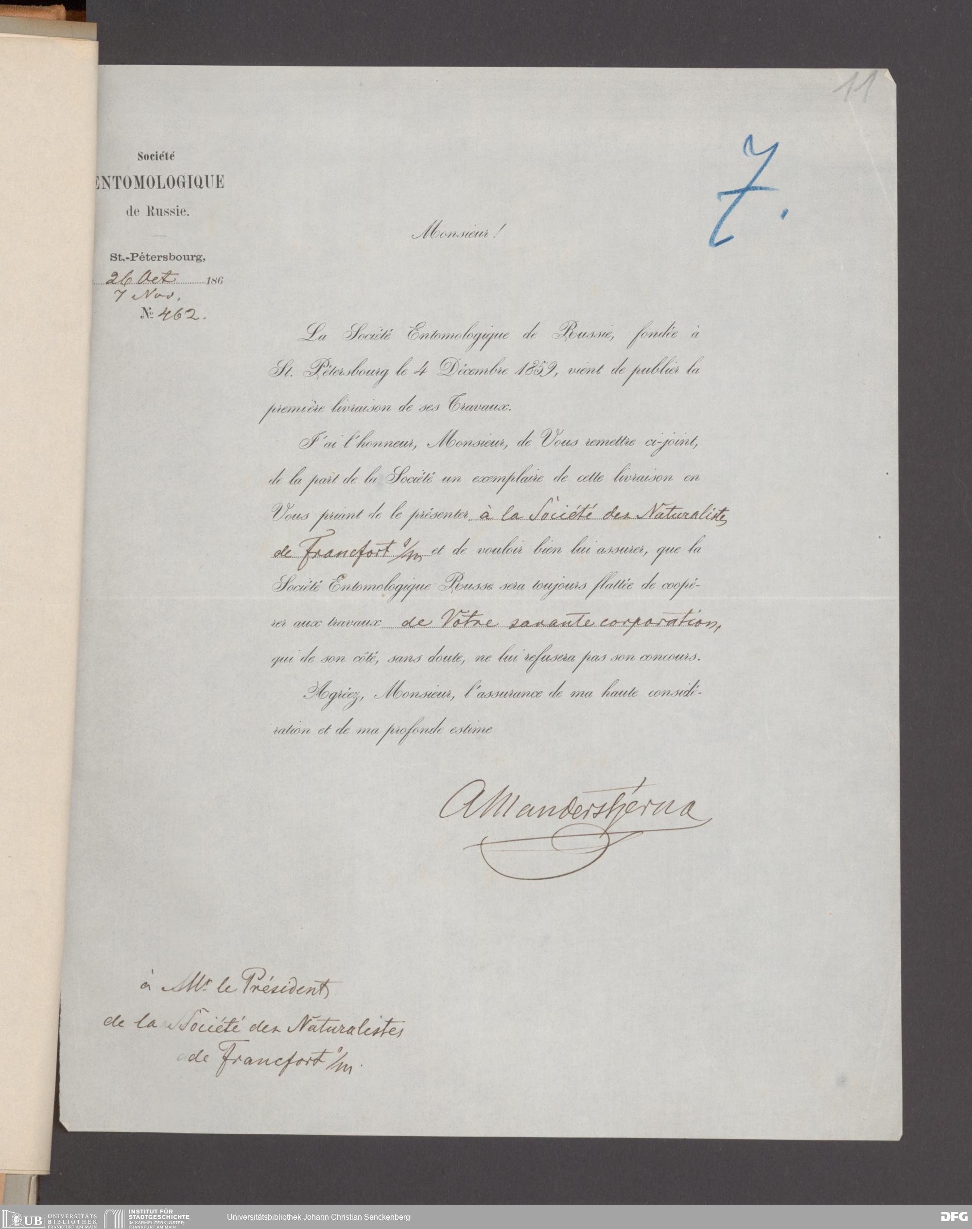 V176 Senckenberg Gesellschaft für Naturforschung, 17 - Korrespondenz über den Schriftentausch mit naturwissenschaftlichen Vereinigungen mit Ortsindex, Bd. 1