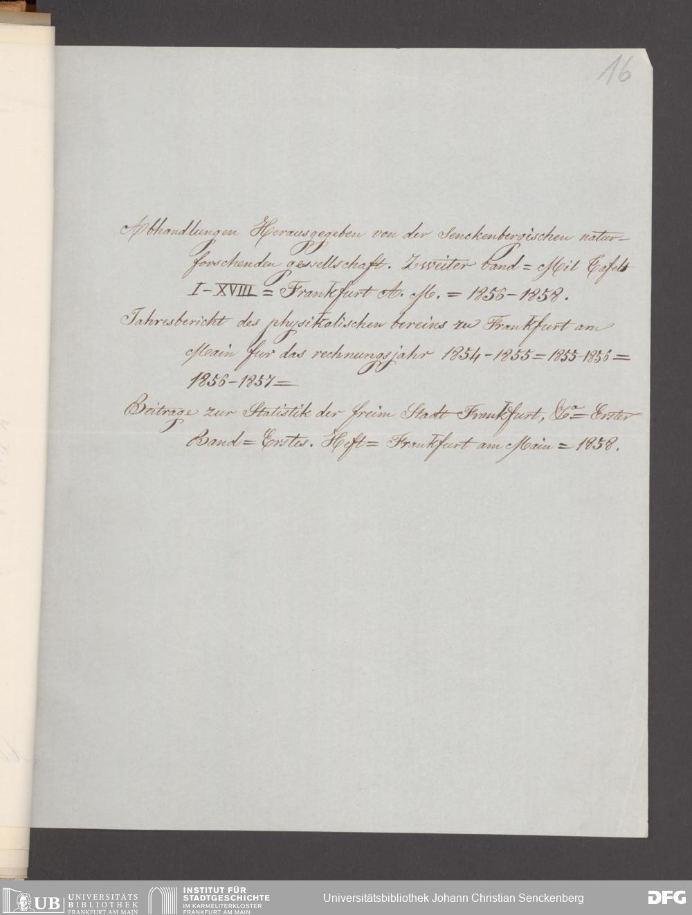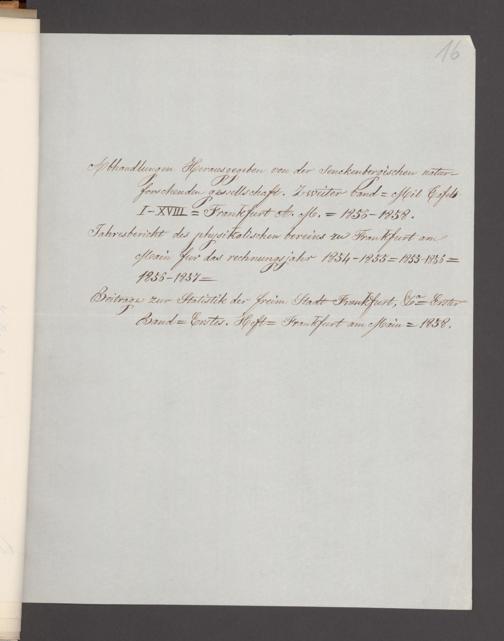 V176 Senckenberg Gesellschaft für Naturforschung, 17 - Korrespondenz über den Schriftentausch mit naturwissenschaftlichen Vereinigungen mit Ortsindex, Bd. 1
