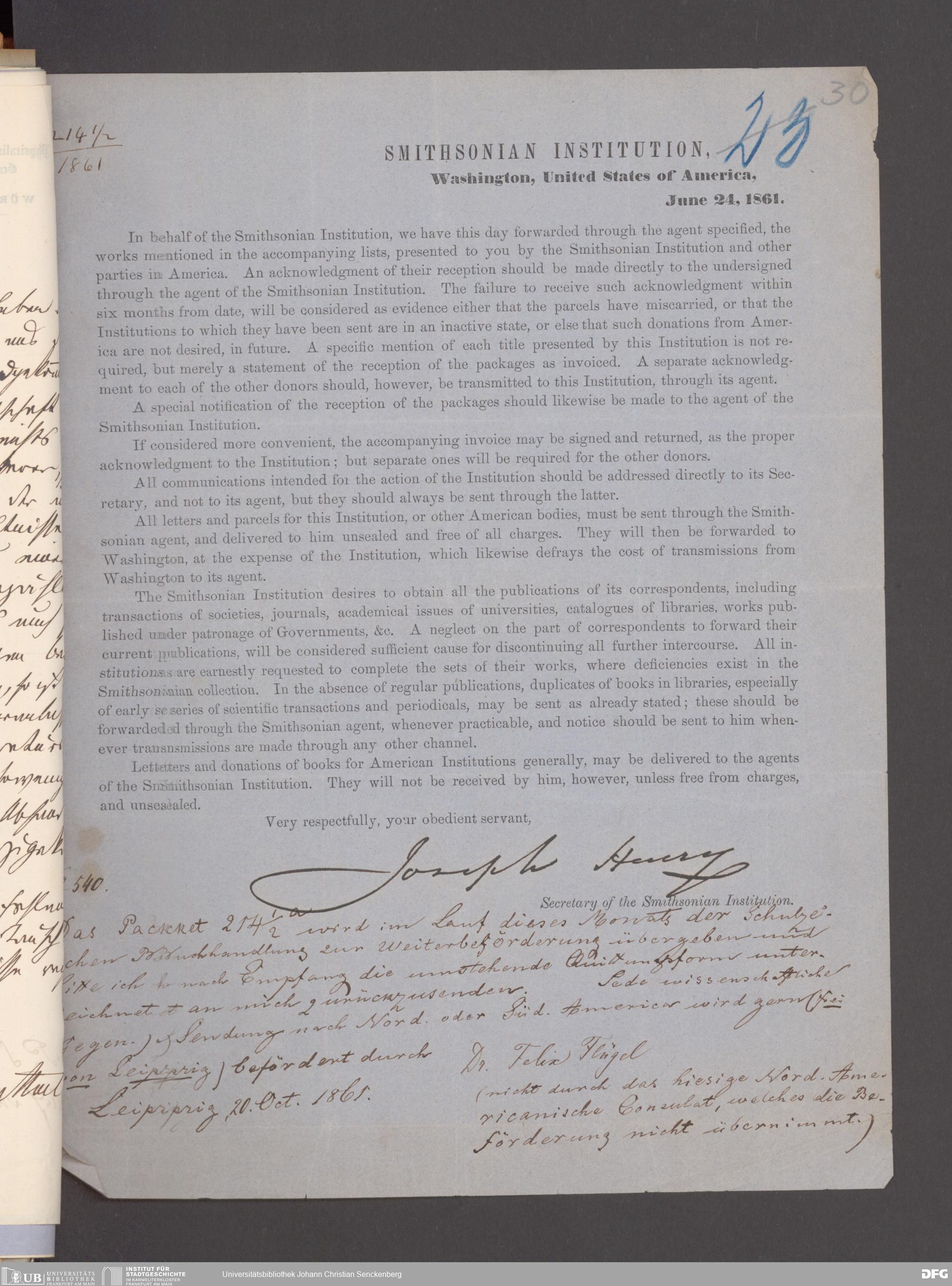 V176 Senckenberg Gesellschaft für Naturforschung, 17 - Korrespondenz über den Schriftentausch mit naturwissenschaftlichen Vereinigungen mit Ortsindex, Bd. 1