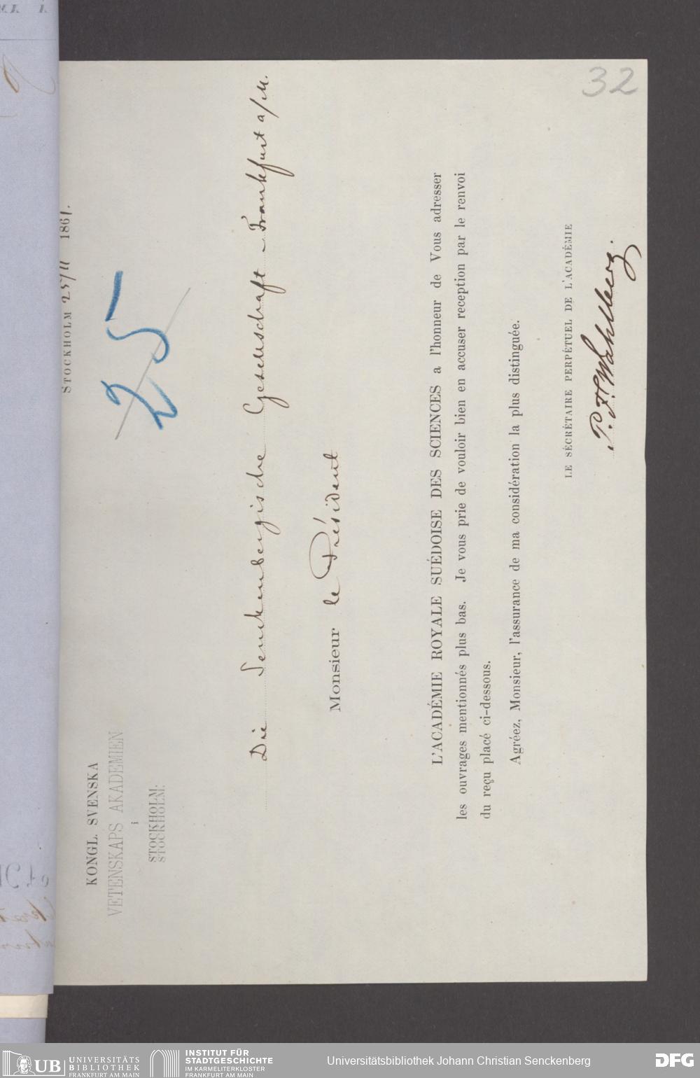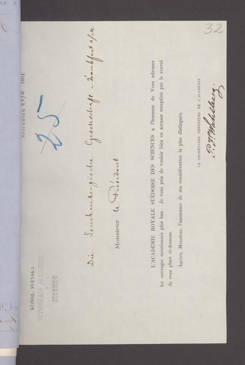 V176 Senckenberg Gesellschaft für Naturforschung, 17 - Korrespondenz über den Schriftentausch mit naturwissenschaftlichen Vereinigungen mit Ortsindex, Bd. 1