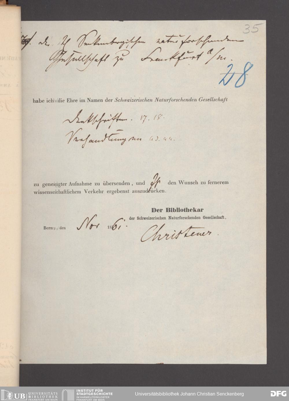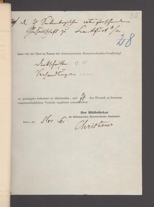 V176 Senckenberg Gesellschaft für Naturforschung, 17 - Korrespondenz über den Schriftentausch mit naturwissenschaftlichen Vereinigungen mit Ortsindex, Bd. 1