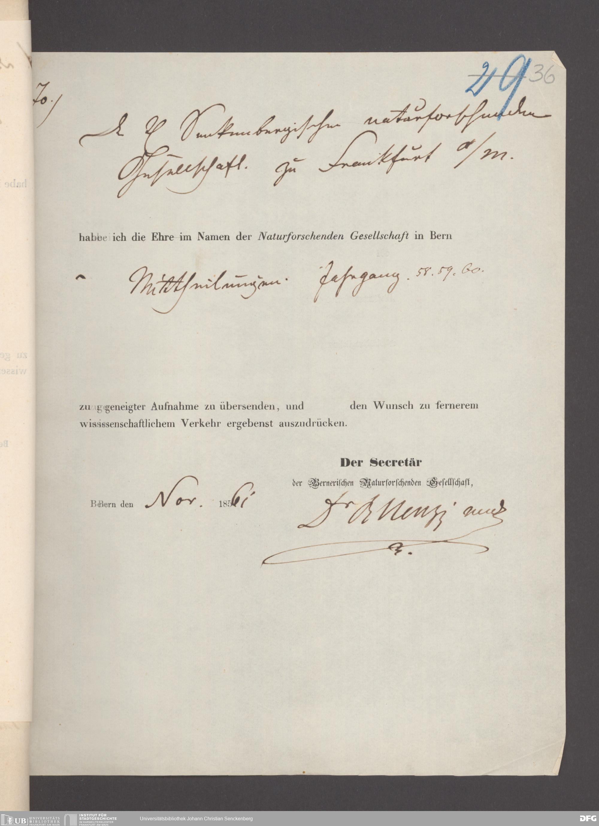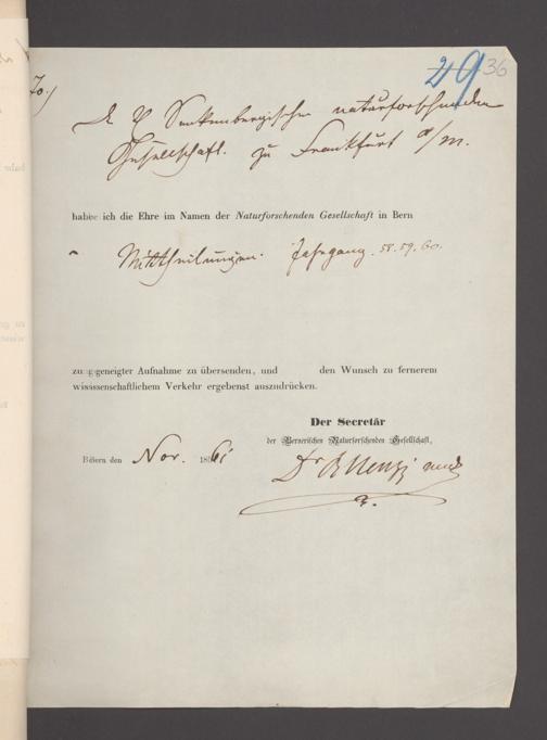 V176 Senckenberg Gesellschaft für Naturforschung, 17 - Korrespondenz über den Schriftentausch mit naturwissenschaftlichen Vereinigungen mit Ortsindex, Bd. 1