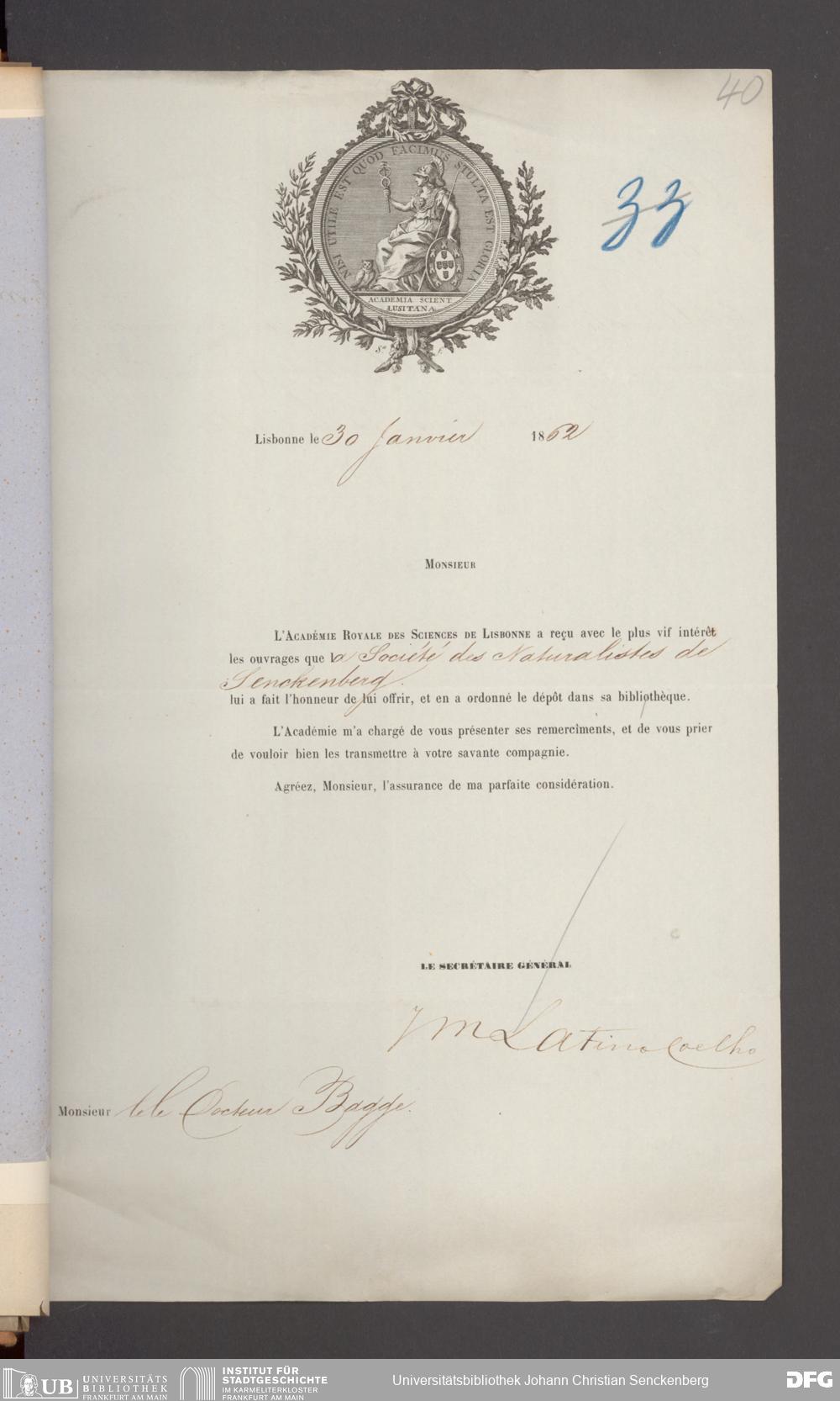 V176 Senckenberg Gesellschaft für Naturforschung, 17 - Korrespondenz über den Schriftentausch mit naturwissenschaftlichen Vereinigungen mit Ortsindex, Bd. 1