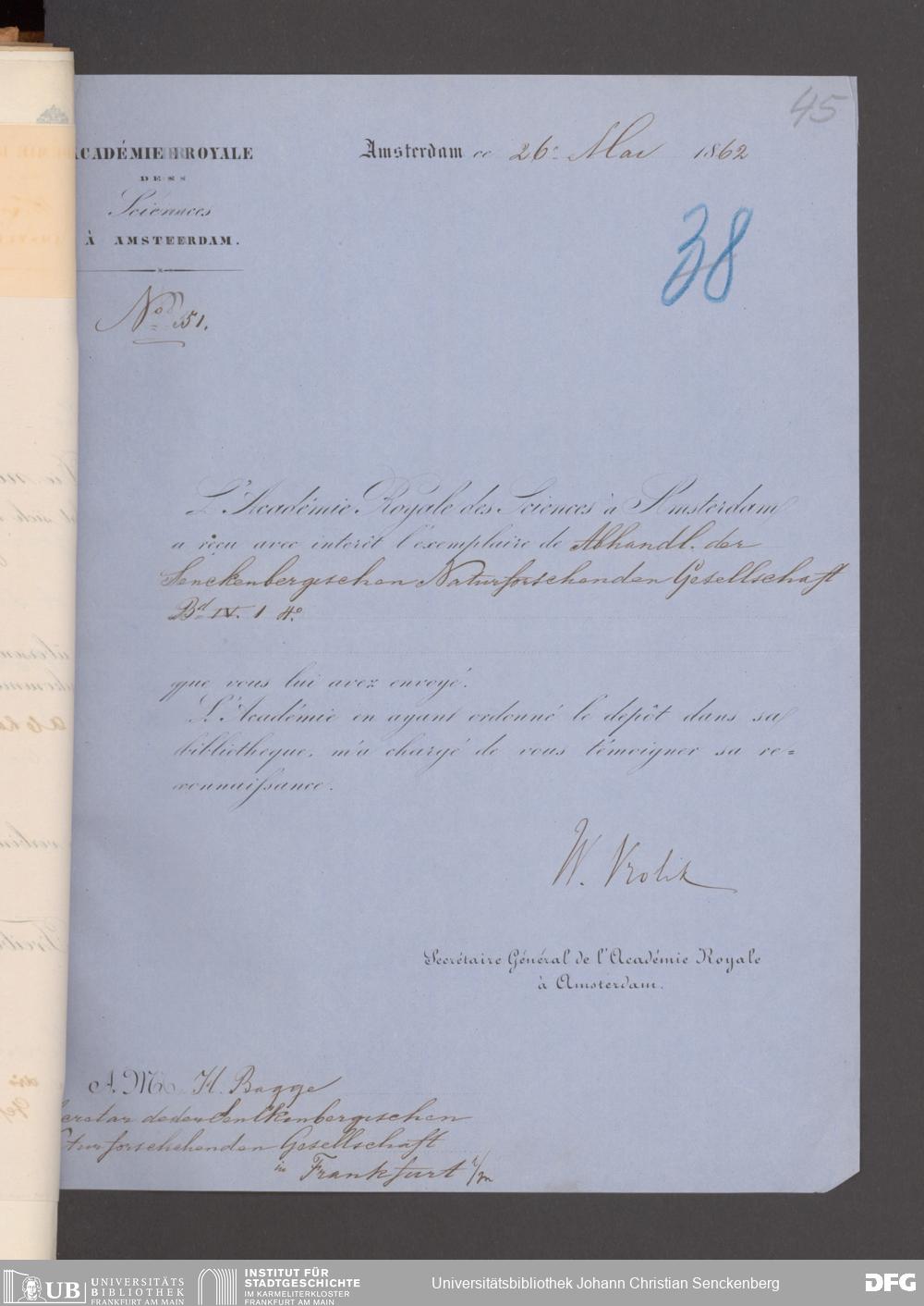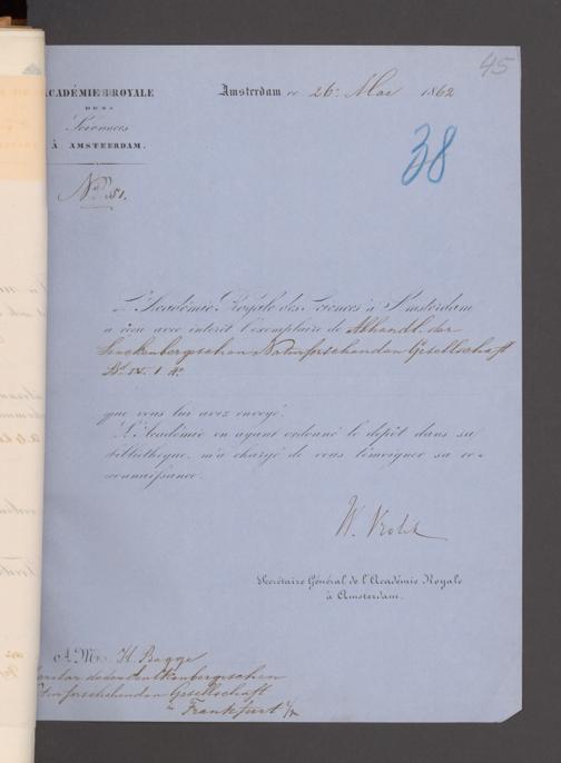 V176 Senckenberg Gesellschaft für Naturforschung, 17 - Korrespondenz über den Schriftentausch mit naturwissenschaftlichen Vereinigungen mit Ortsindex, Bd. 1