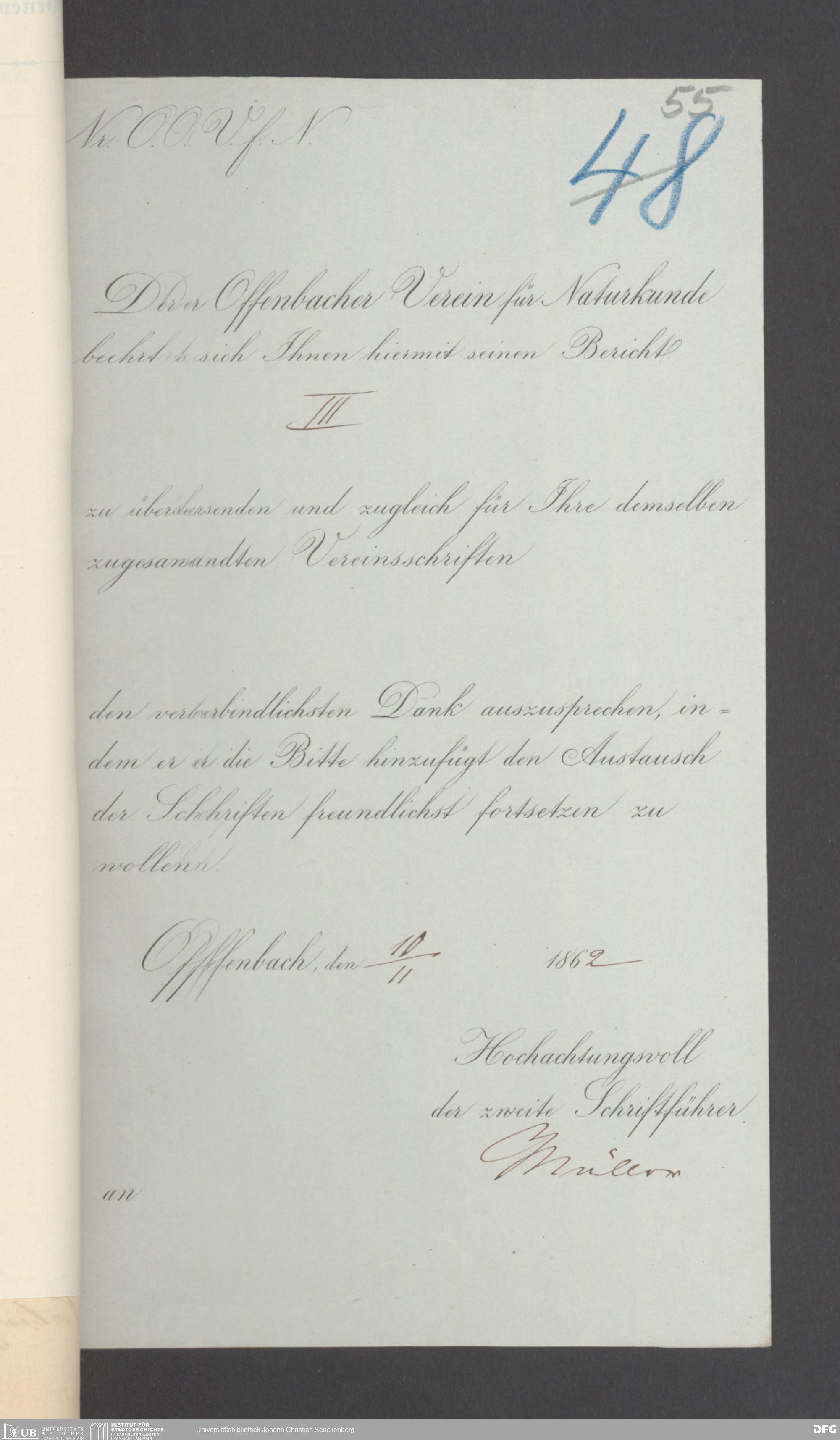 V176 Senckenberg Gesellschaft für Naturforschung, 17 - Korrespondenz über den Schriftentausch mit naturwissenschaftlichen Vereinigungen mit Ortsindex, Bd. 1