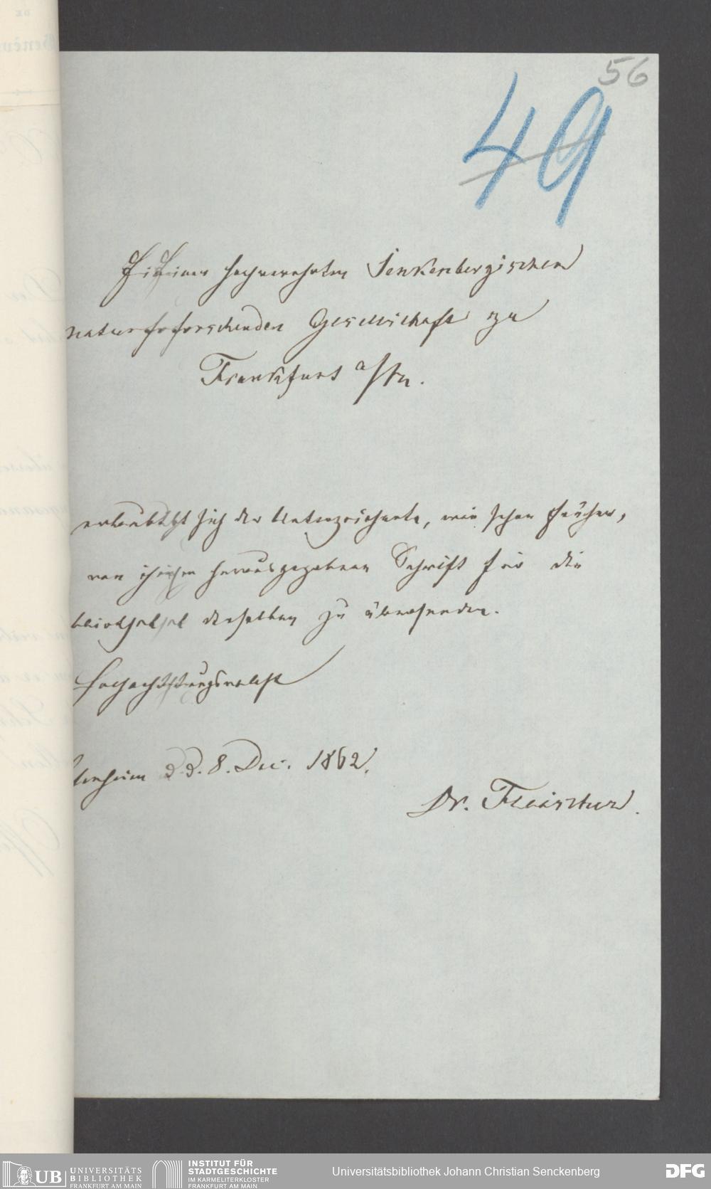V176 Senckenberg Gesellschaft für Naturforschung, 17 - Korrespondenz über den Schriftentausch mit naturwissenschaftlichen Vereinigungen mit Ortsindex, Bd. 1