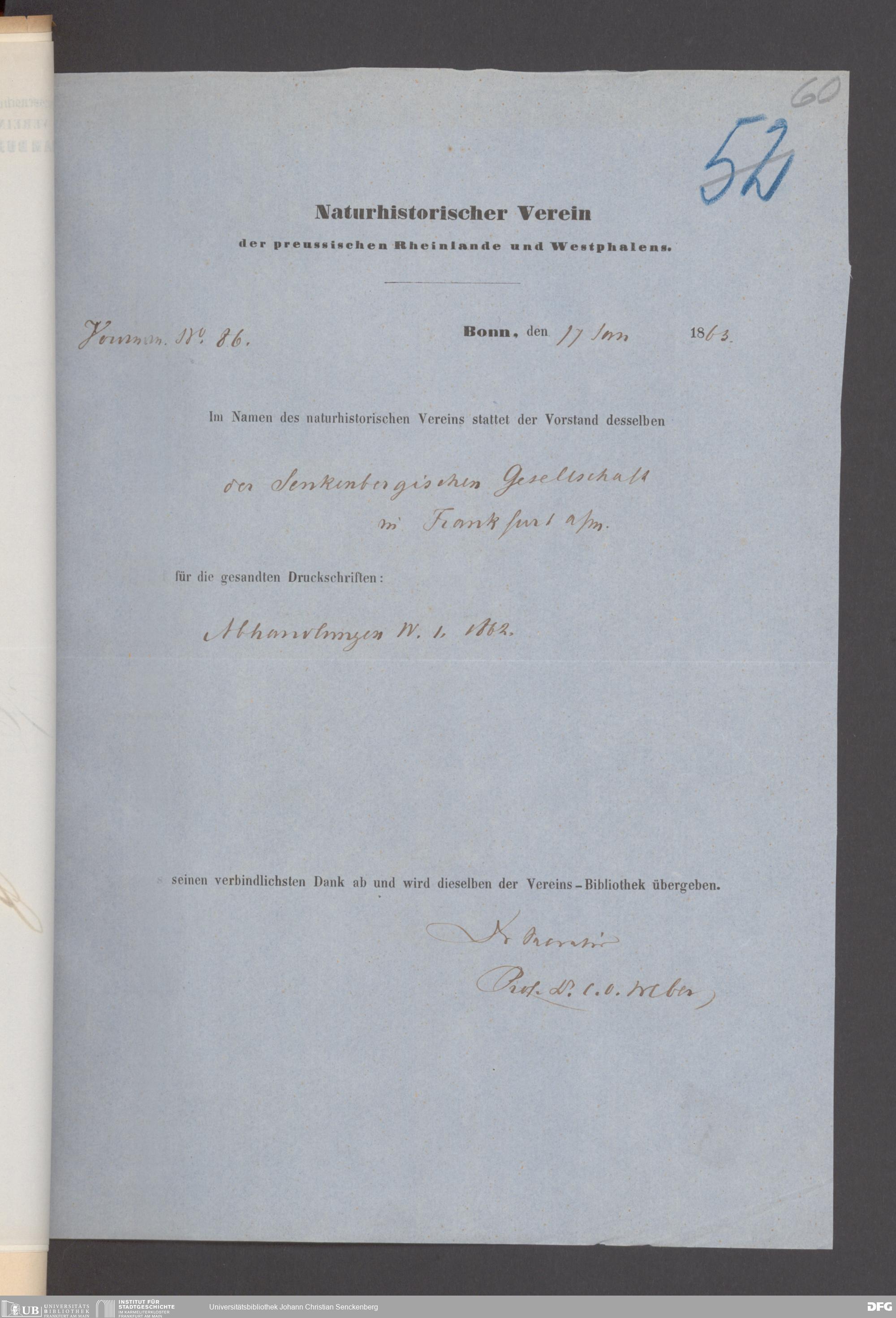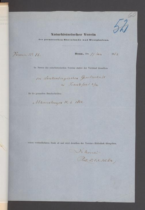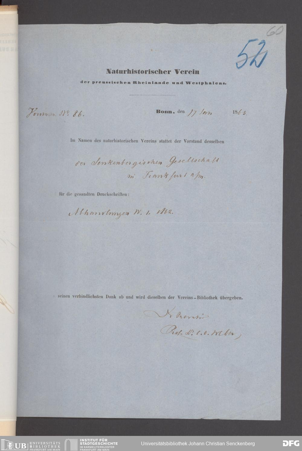 V176 Senckenberg Gesellschaft für Naturforschung, 17 - Korrespondenz über den Schriftentausch mit naturwissenschaftlichen Vereinigungen mit Ortsindex, Bd. 1