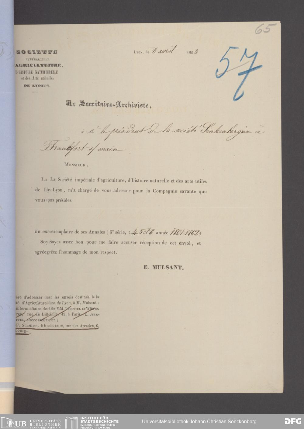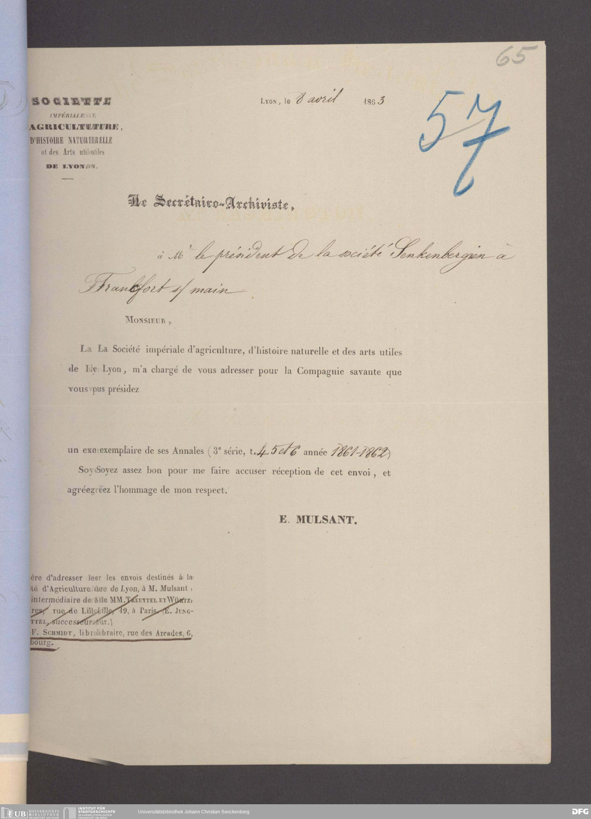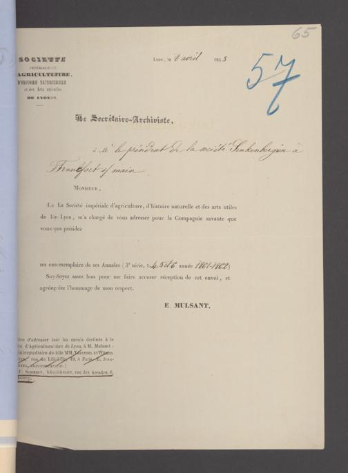 V176 Senckenberg Gesellschaft für Naturforschung, 17 - Korrespondenz über den Schriftentausch mit naturwissenschaftlichen Vereinigungen mit Ortsindex, Bd. 1