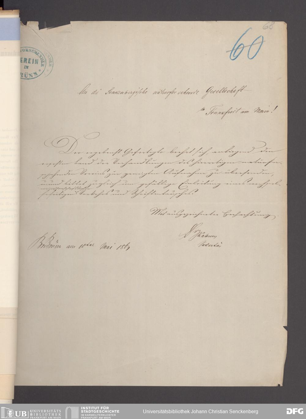 V176 Senckenberg Gesellschaft für Naturforschung, 17 - Korrespondenz über den Schriftentausch mit naturwissenschaftlichen Vereinigungen mit Ortsindex, Bd. 1