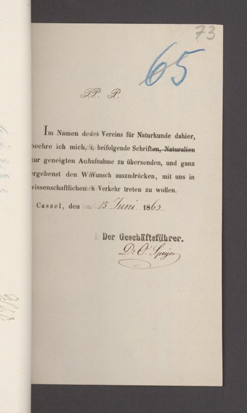 V176 Senckenberg Gesellschaft für Naturforschung, 17 - Korrespondenz über den Schriftentausch mit naturwissenschaftlichen Vereinigungen mit Ortsindex, Bd. 1