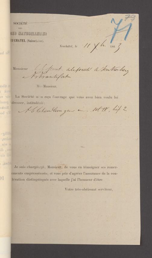 V176 Senckenberg Gesellschaft für Naturforschung, 17 - Korrespondenz über den Schriftentausch mit naturwissenschaftlichen Vereinigungen mit Ortsindex, Bd. 1