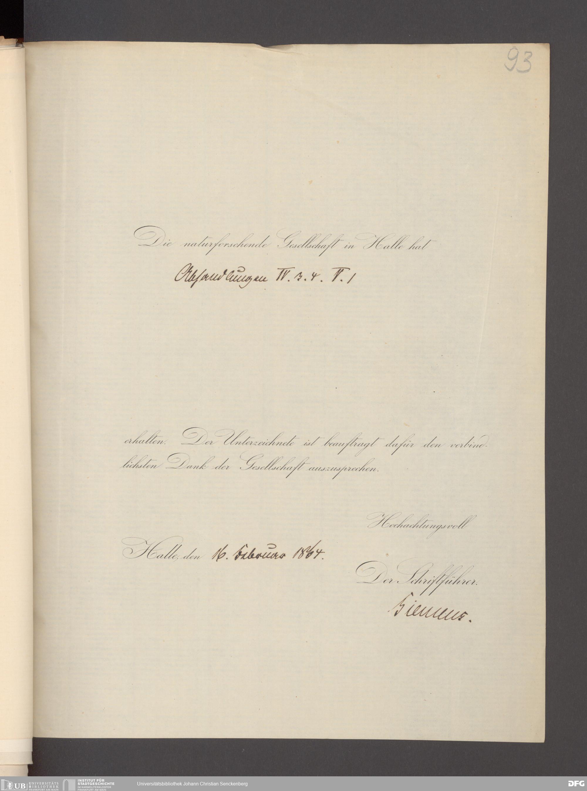 V176 Senckenberg Gesellschaft für Naturforschung, 17 - Korrespondenz über den Schriftentausch mit naturwissenschaftlichen Vereinigungen mit Ortsindex, Bd. 1