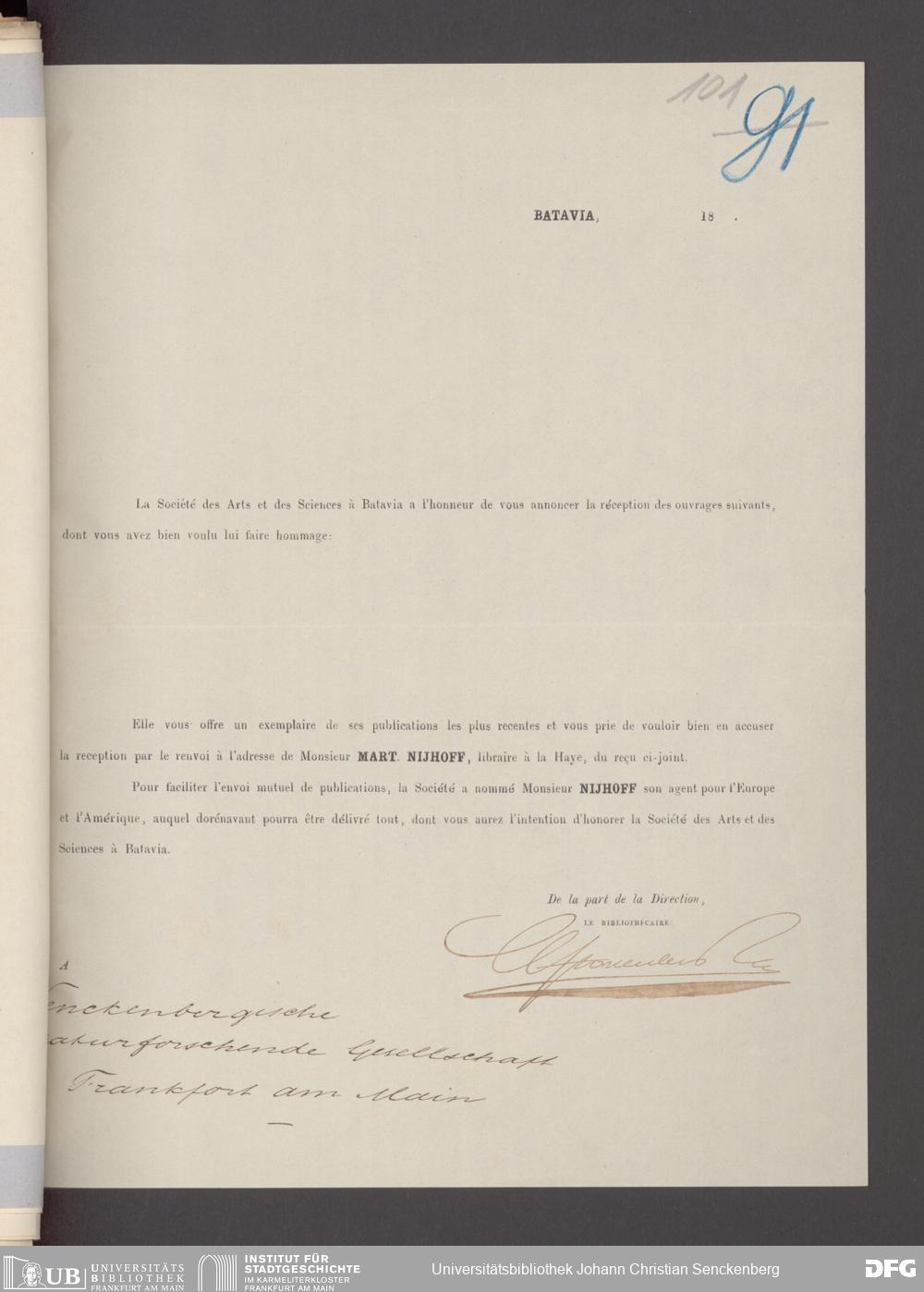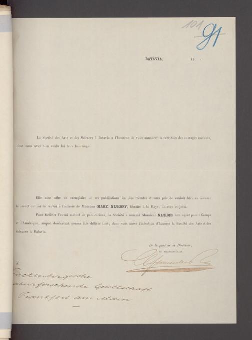 V176 Senckenberg Gesellschaft für Naturforschung, 17 - Korrespondenz über den Schriftentausch mit naturwissenschaftlichen Vereinigungen mit Ortsindex, Bd. 1
