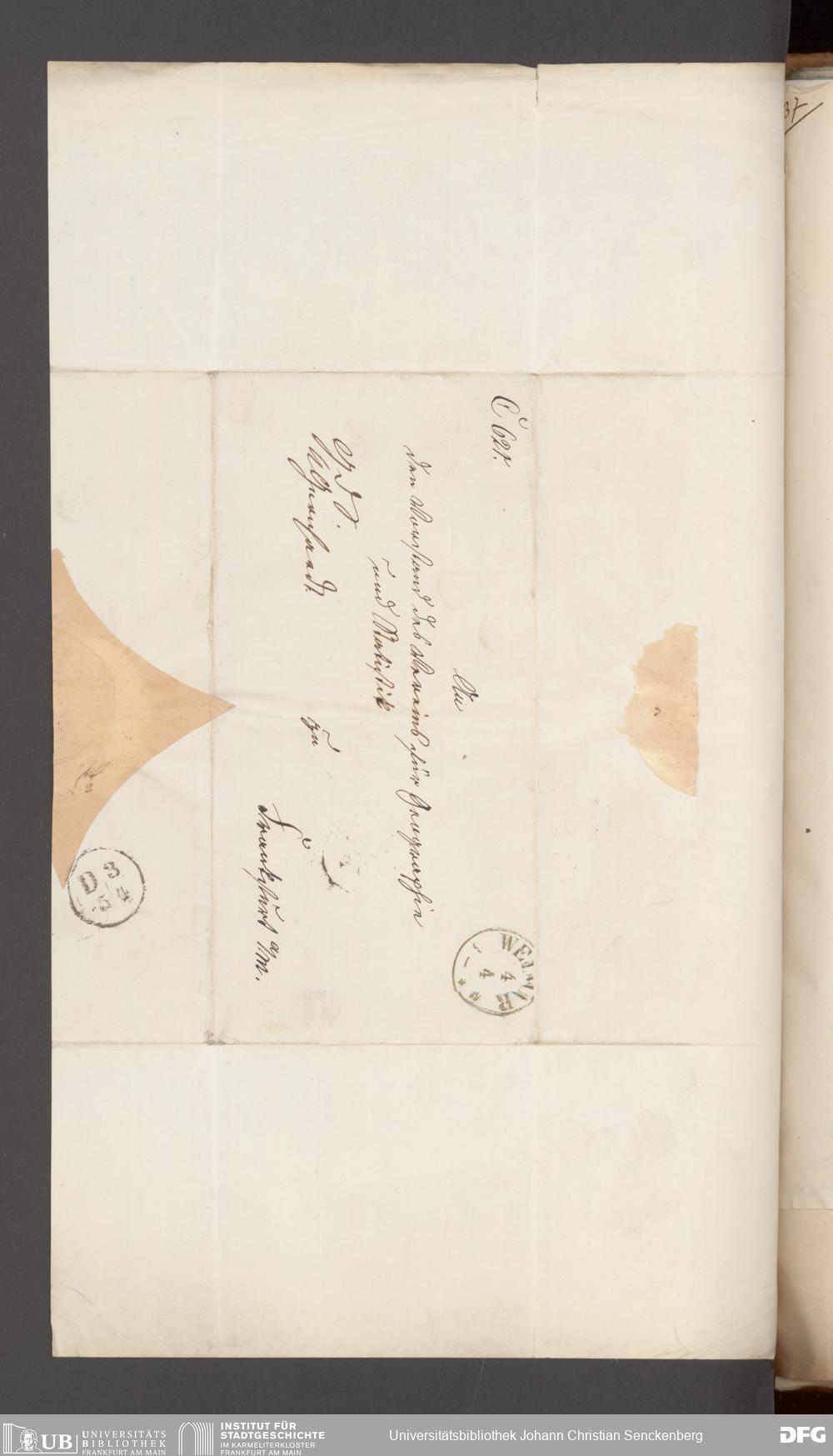 V176 Senckenberg Gesellschaft für Naturforschung, 17 - Korrespondenz über den Schriftentausch mit naturwissenschaftlichen Vereinigungen mit Ortsindex, Bd. 1