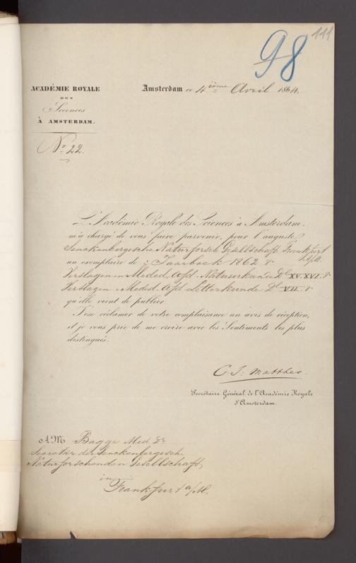 V176 Senckenberg Gesellschaft für Naturforschung, 17 - Korrespondenz über den Schriftentausch mit naturwissenschaftlichen Vereinigungen mit Ortsindex, Bd. 1