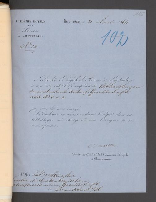 V176 Senckenberg Gesellschaft für Naturforschung, 17 - Korrespondenz über den Schriftentausch mit naturwissenschaftlichen Vereinigungen mit Ortsindex, Bd. 1