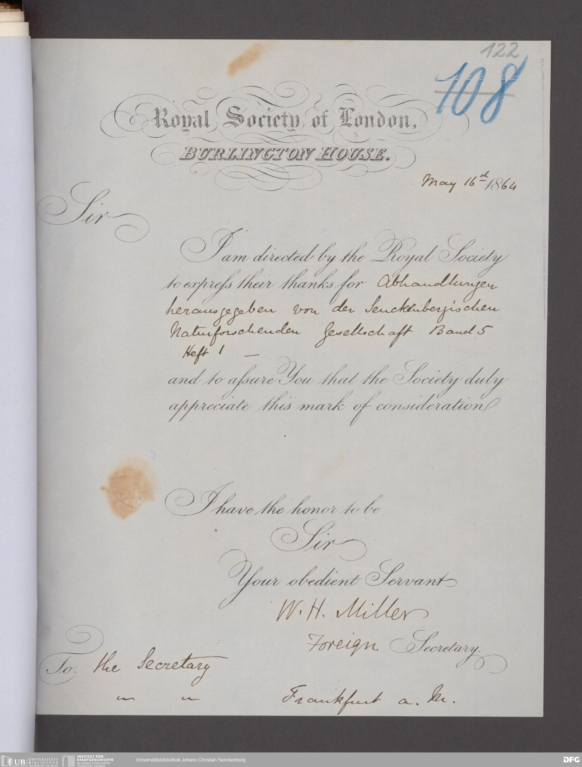 V176 Senckenberg Gesellschaft für Naturforschung, 17 - Korrespondenz über den Schriftentausch mit naturwissenschaftlichen Vereinigungen mit Ortsindex, Bd. 1