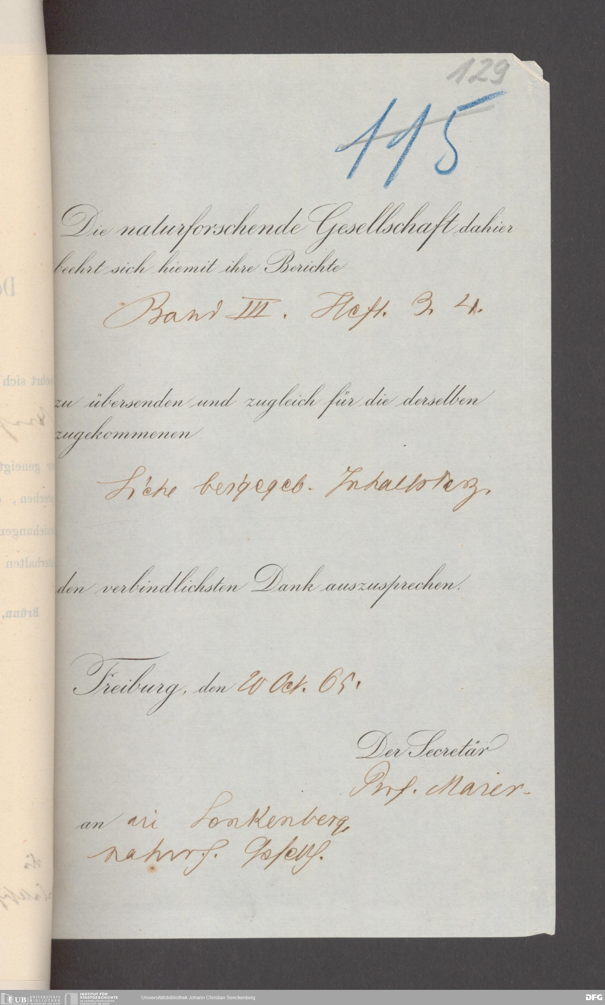 V176 Senckenberg Gesellschaft für Naturforschung, 17 - Korrespondenz über den Schriftentausch mit naturwissenschaftlichen Vereinigungen mit Ortsindex, Bd. 1