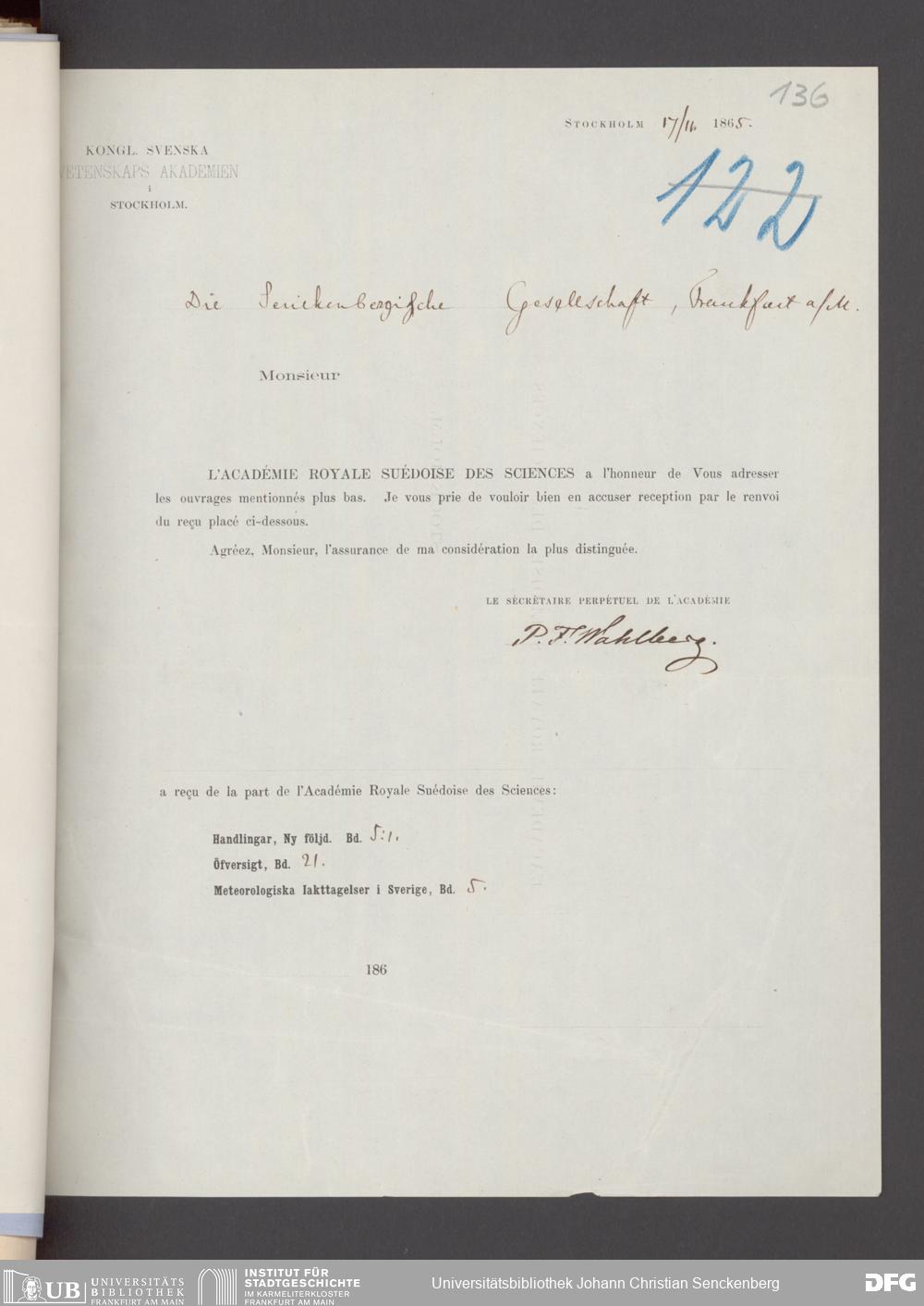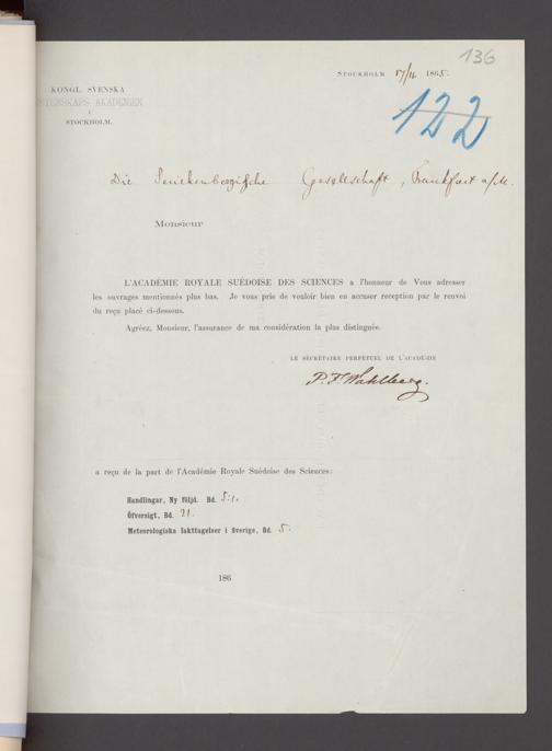 V176 Senckenberg Gesellschaft für Naturforschung, 17 - Korrespondenz über den Schriftentausch mit naturwissenschaftlichen Vereinigungen mit Ortsindex, Bd. 1