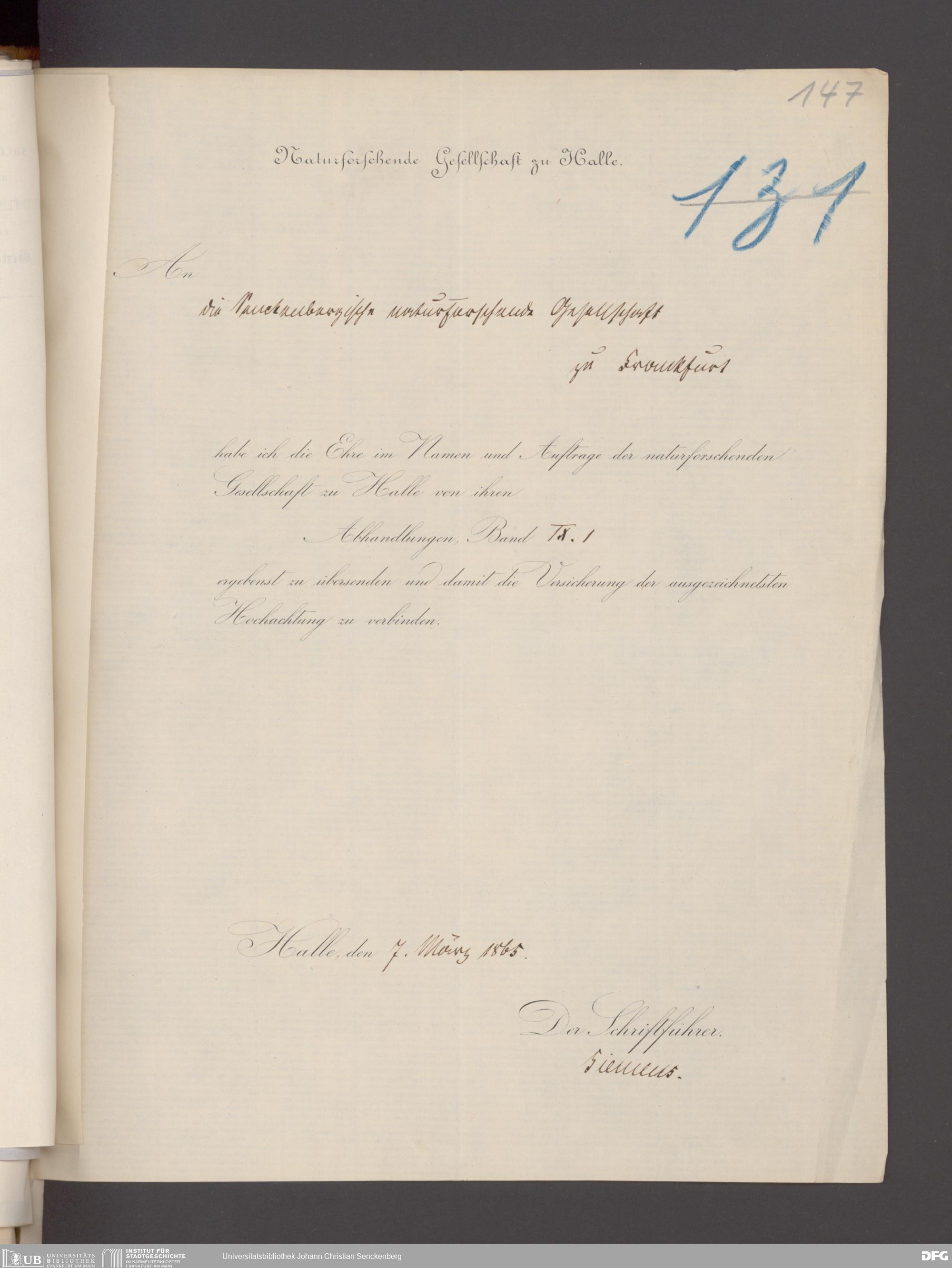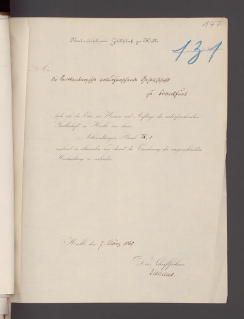 V176 Senckenberg Gesellschaft für Naturforschung, 17 - Korrespondenz über den Schriftentausch mit naturwissenschaftlichen Vereinigungen mit Ortsindex, Bd. 1