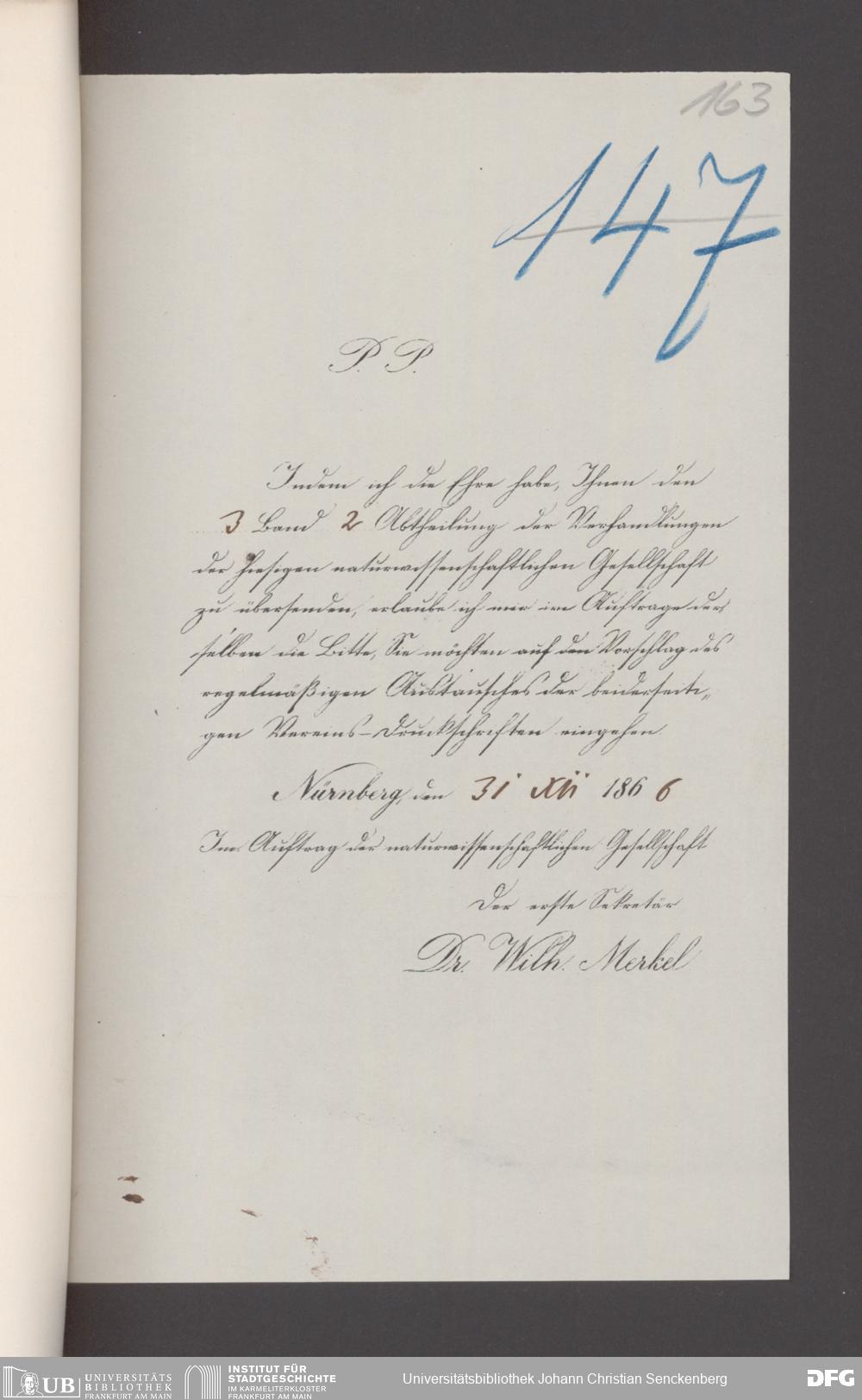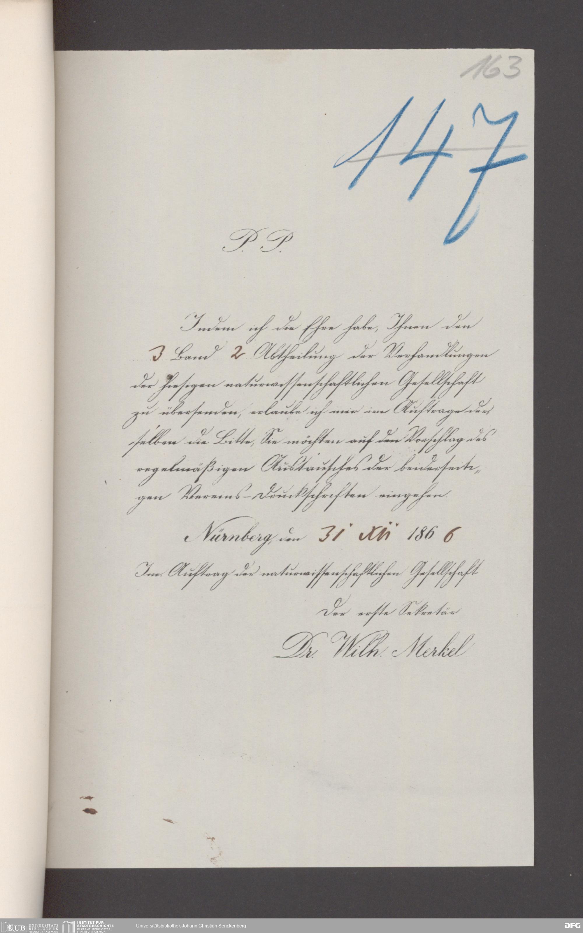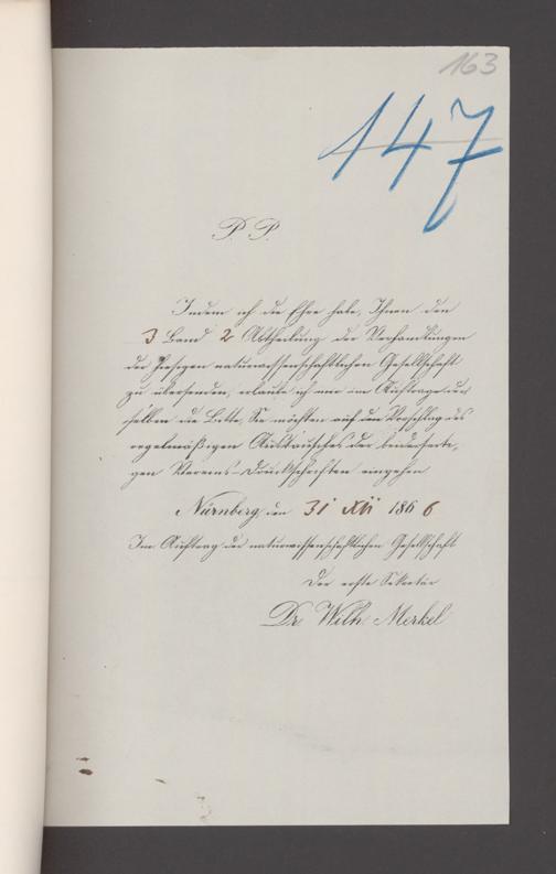 V176 Senckenberg Gesellschaft für Naturforschung, 17 - Korrespondenz über den Schriftentausch mit naturwissenschaftlichen Vereinigungen mit Ortsindex, Bd. 1
