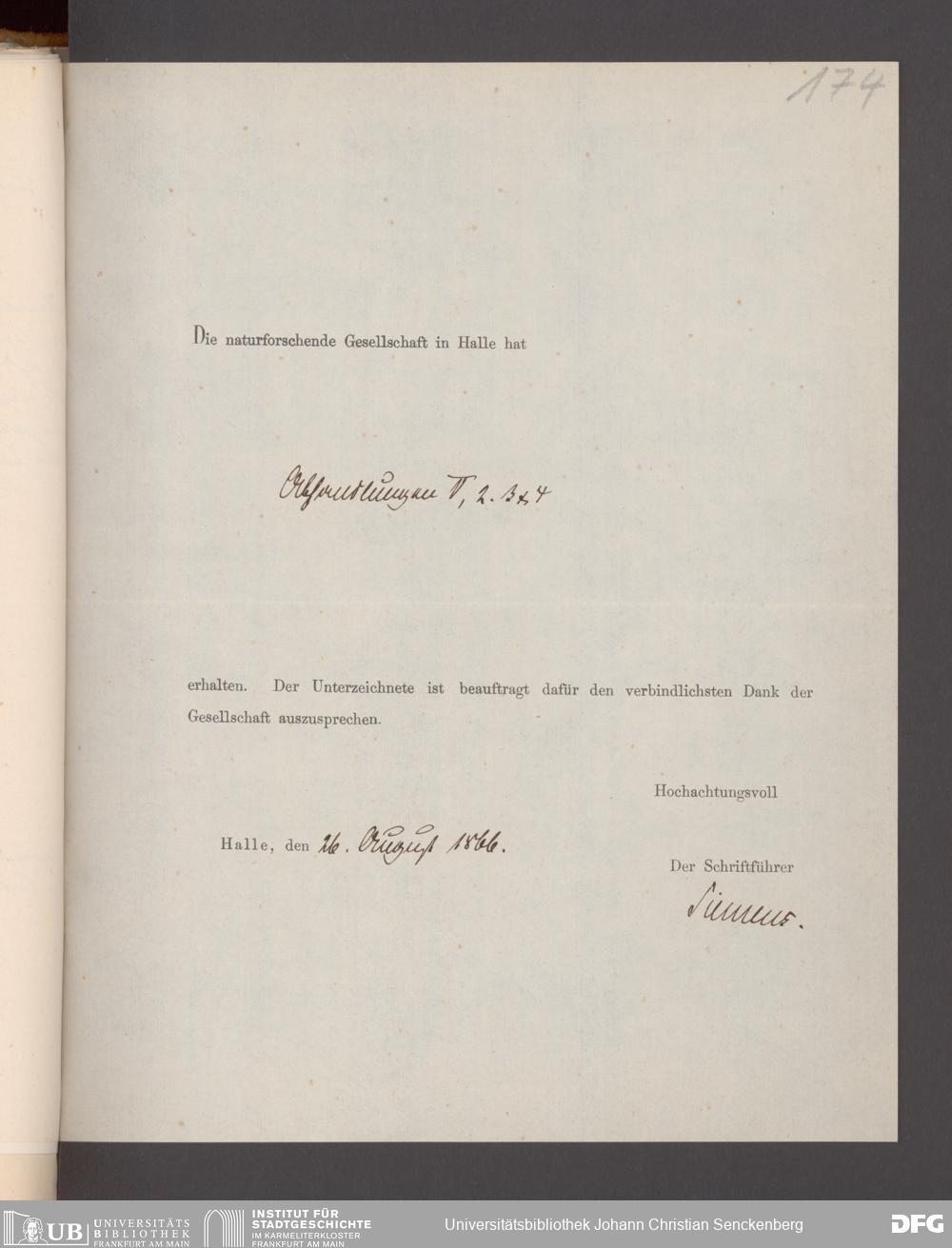 V176 Senckenberg Gesellschaft für Naturforschung, 17 - Korrespondenz über den Schriftentausch mit naturwissenschaftlichen Vereinigungen mit Ortsindex, Bd. 1