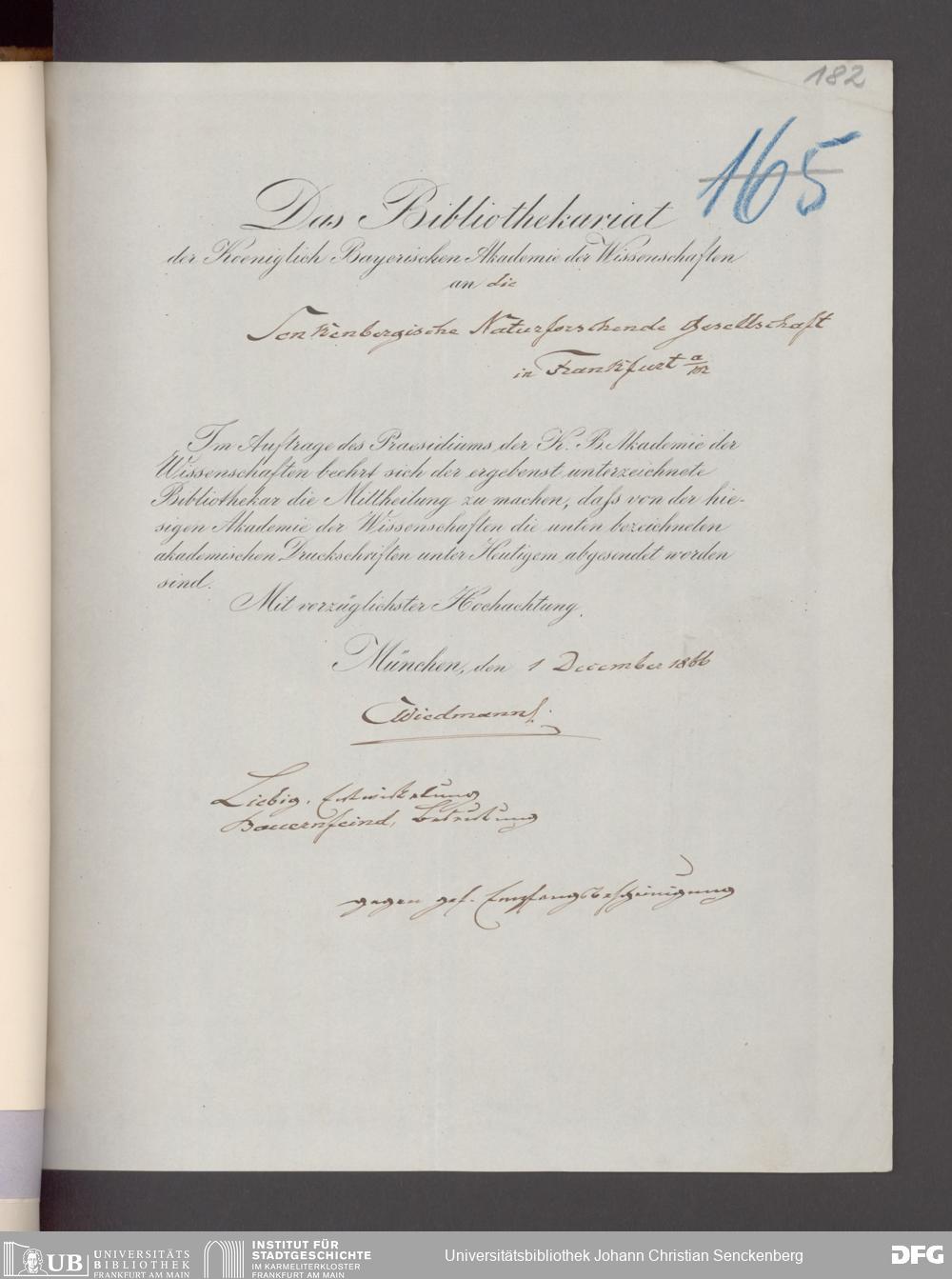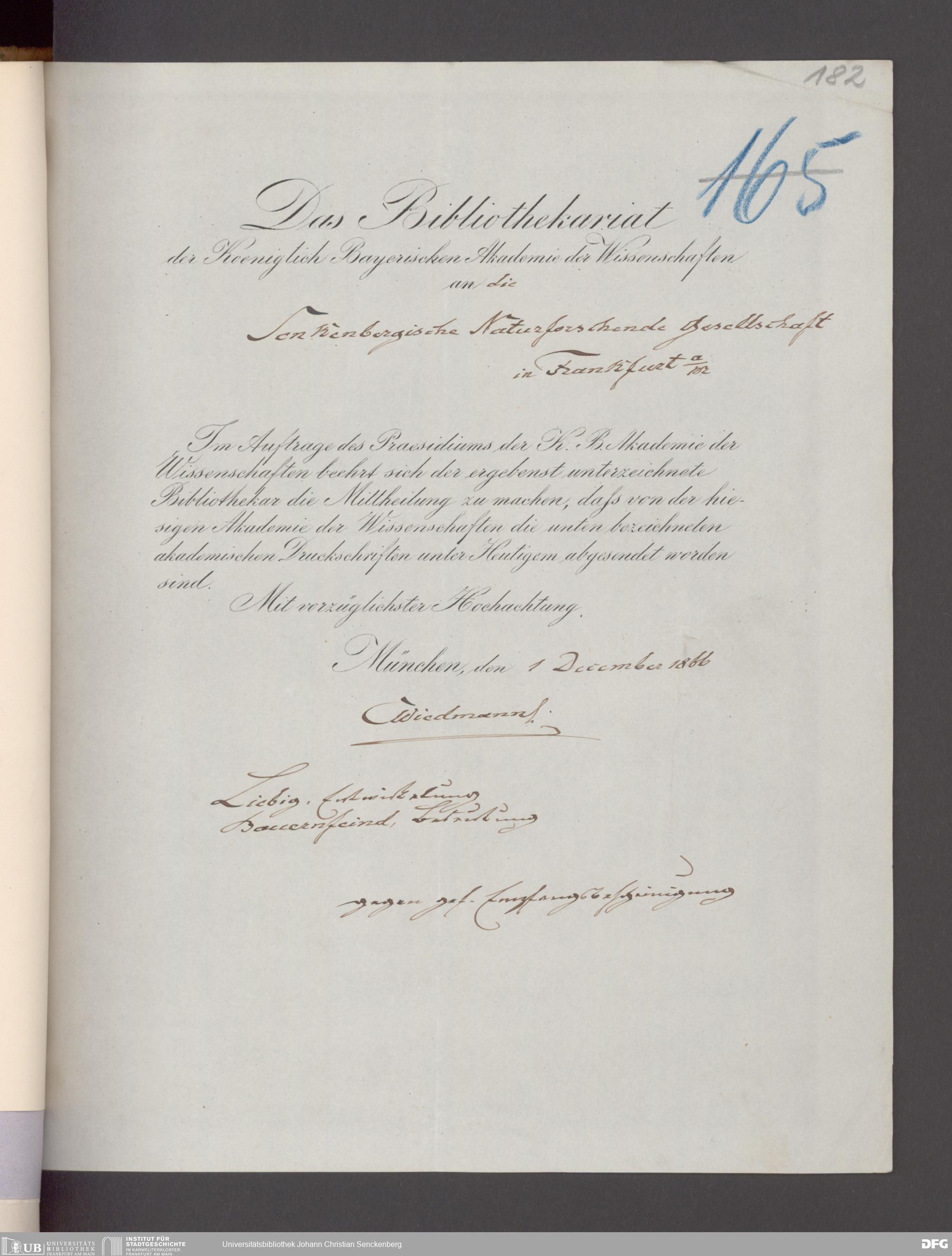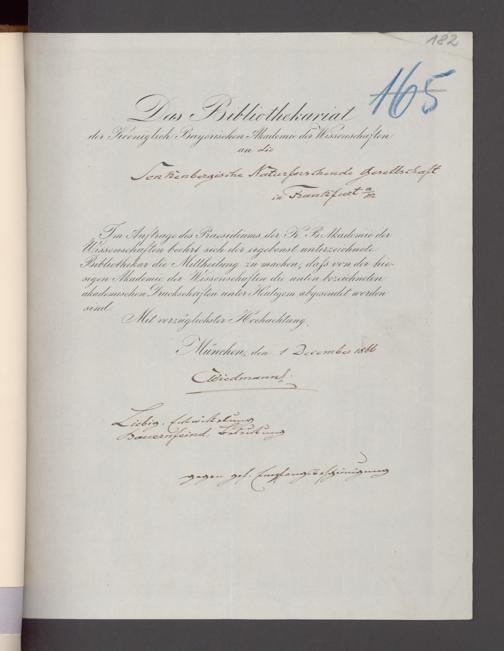 V176 Senckenberg Gesellschaft für Naturforschung, 17 - Korrespondenz über den Schriftentausch mit naturwissenschaftlichen Vereinigungen mit Ortsindex, Bd. 1